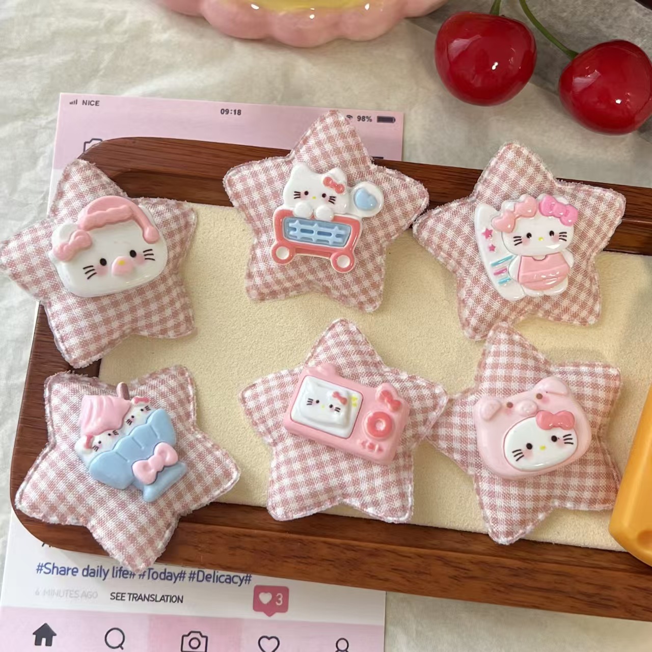 立体漫画の子猫のピンクの格子の五芒星のヘアピンinsの少女の心の甘い美しい前髪の縁はかわいい髪飾りの女性を挟みます。