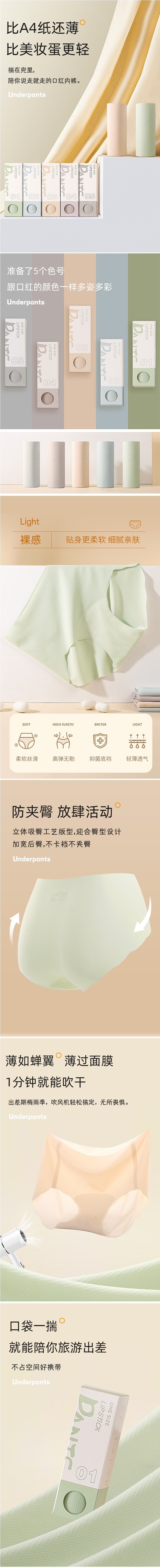 口红便携内裤超薄速干无痕女士中腰夏季冰丝裤头直播爆品冰丝透气