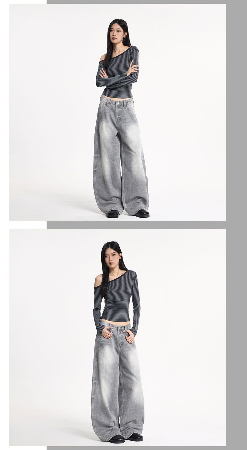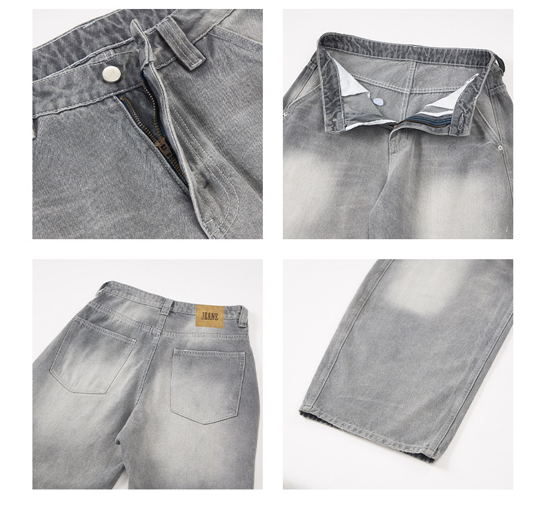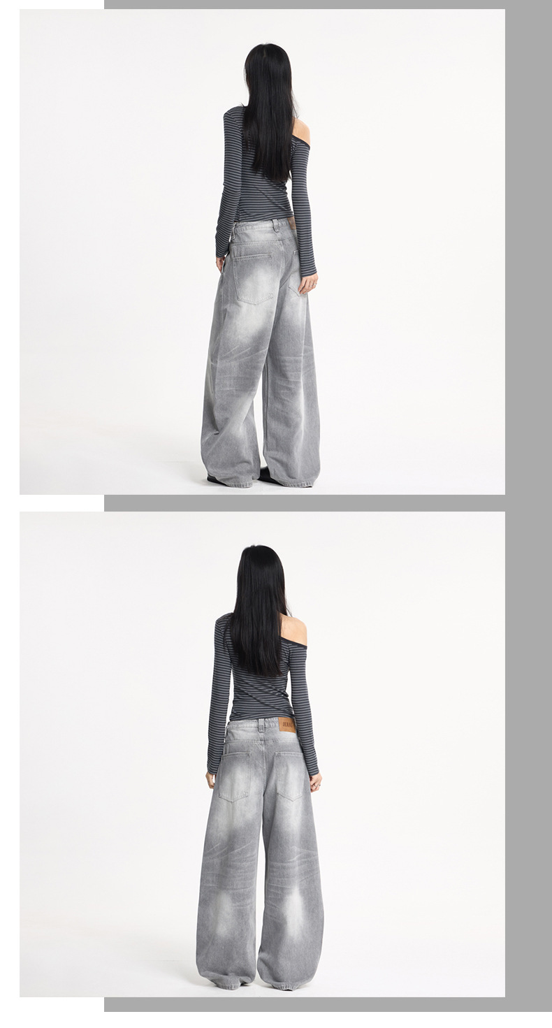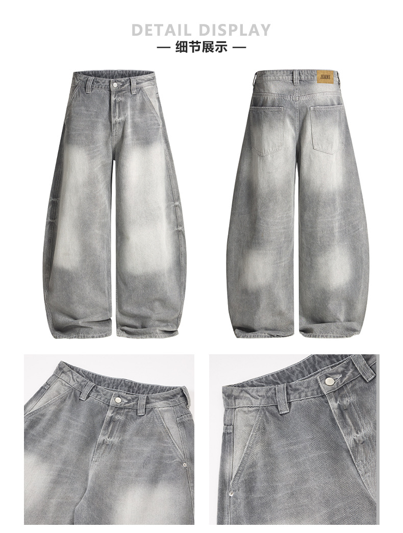 JIAMU灰色美式高街baggy jeans中性阔腿牛仔裤男女宽松廓形香蕉裤
