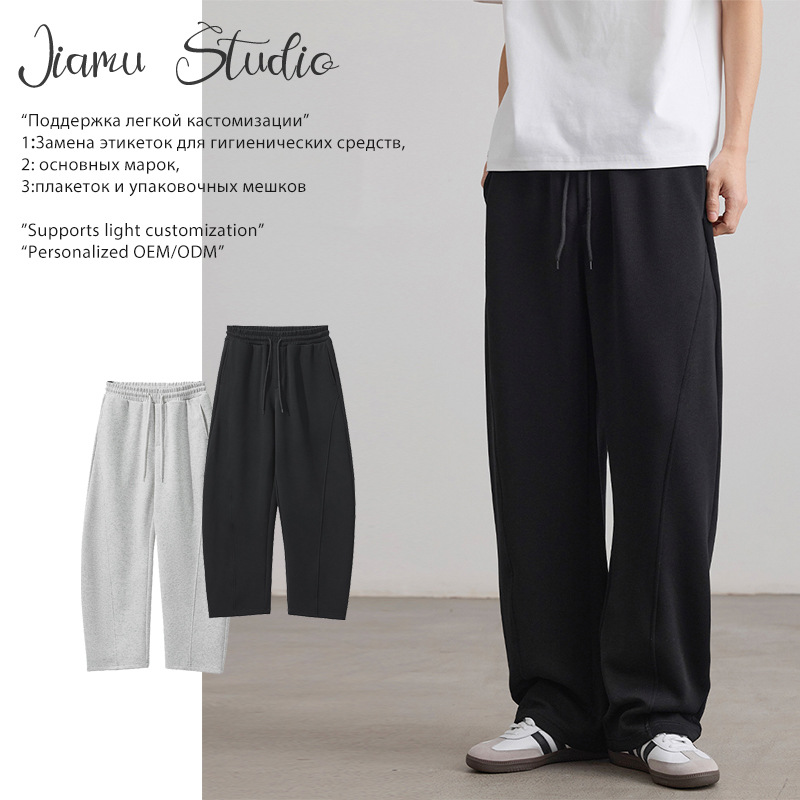 JIAMU春夏アメリカンステッチアーク曲げナイフ衛ズボンbaggyカジュアルパンツ男女ゆったりとした広脚中性垂れ感
