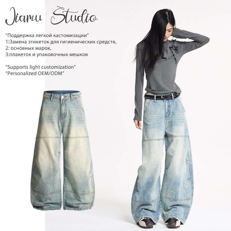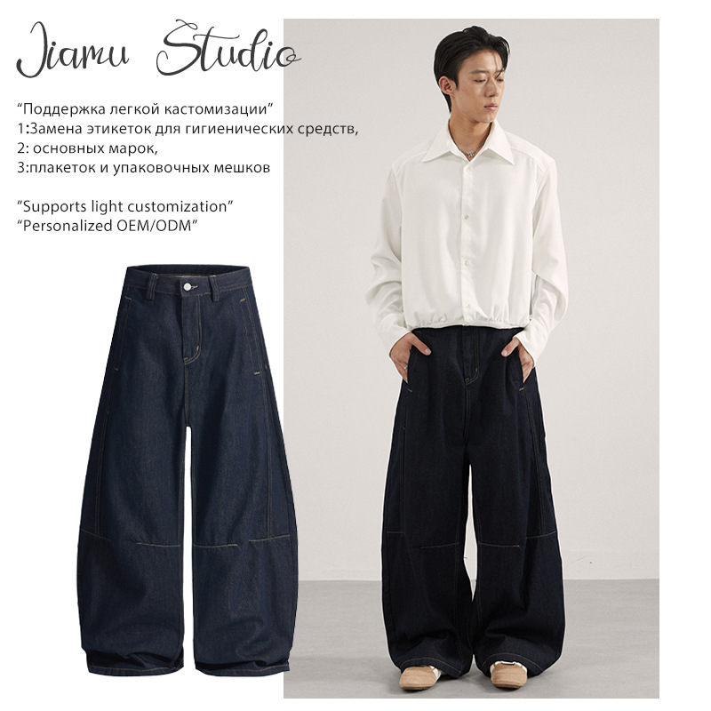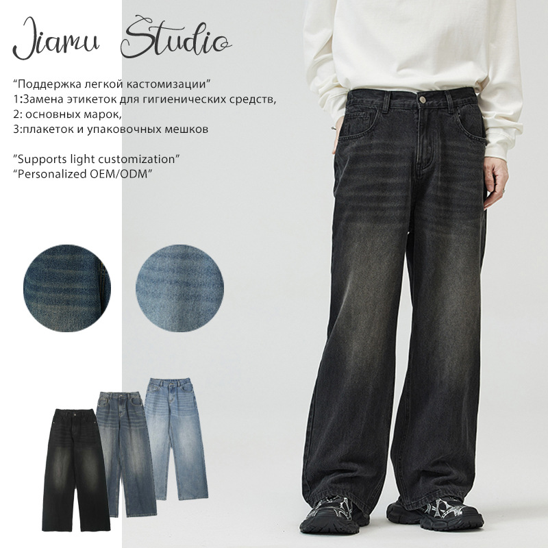 JIAMU 秋冬の主力モデルは、男女兼用のニュートラルなAタイプのストレートレッグルーズバギーマイクロワイドレッグジーンズです。