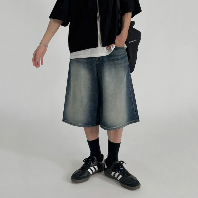MYQレトロ水洗いデニムショートパンツ男性夏のゆるいカジュアルパンツ韓国版トレンド膝五分ズボン