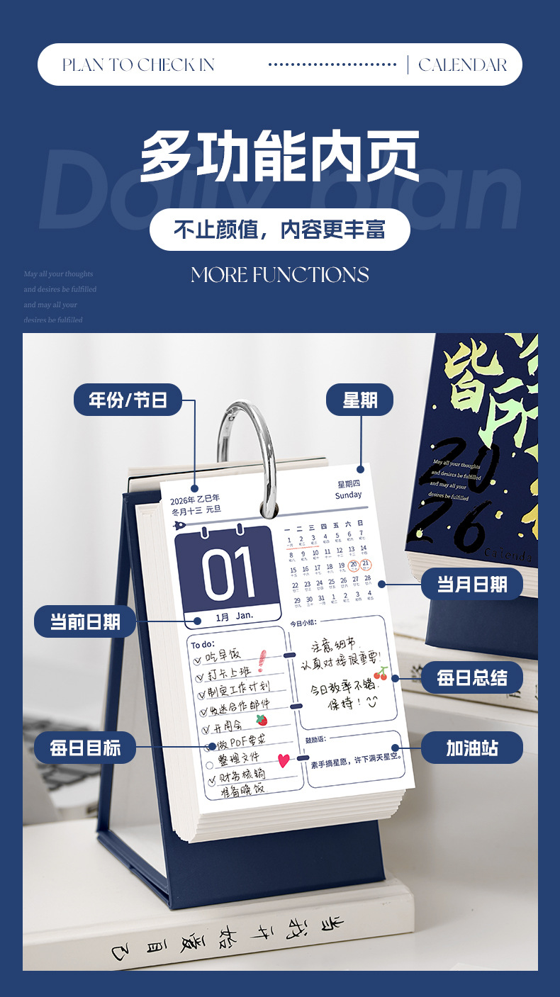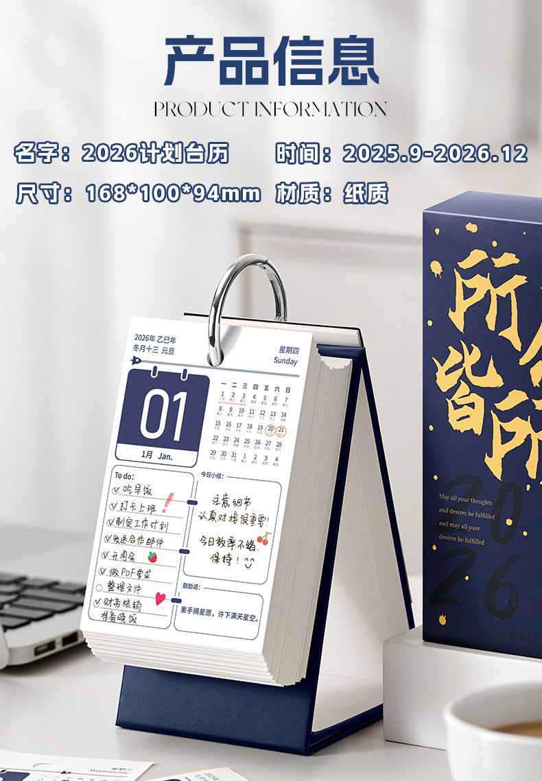 2026年每日计划打卡日历2025年新款台历计划表打卡办公室桌面摆件