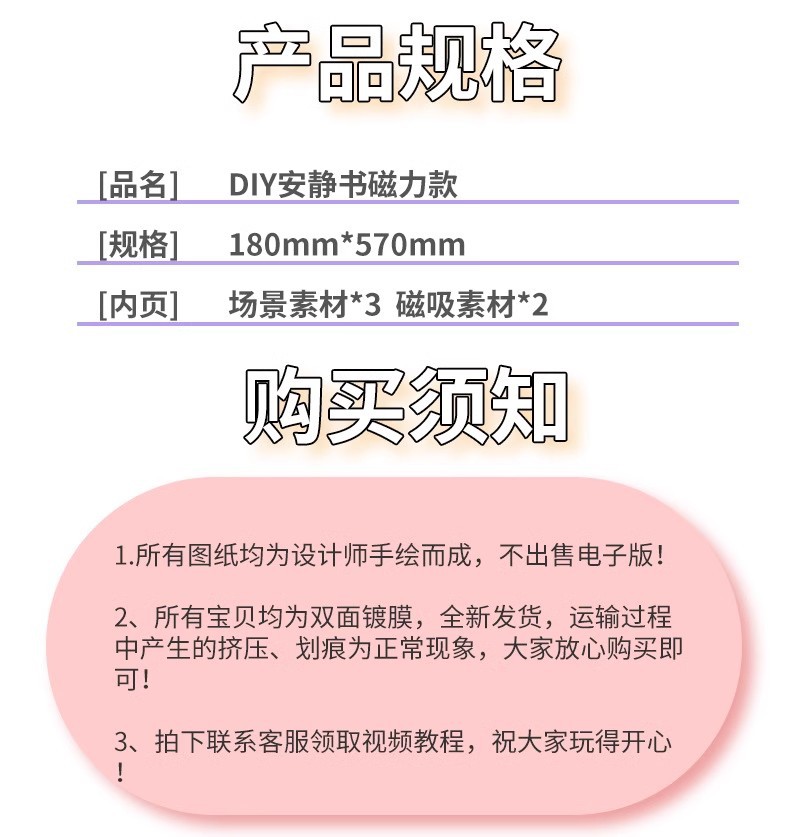 素晴らしいキュートな磁気静音ブックキャッスル、カット不要、磁気ステッカー、DIY手作り磁気ステッカー、女の子向けの大きなサイズ、キュートで楽しい