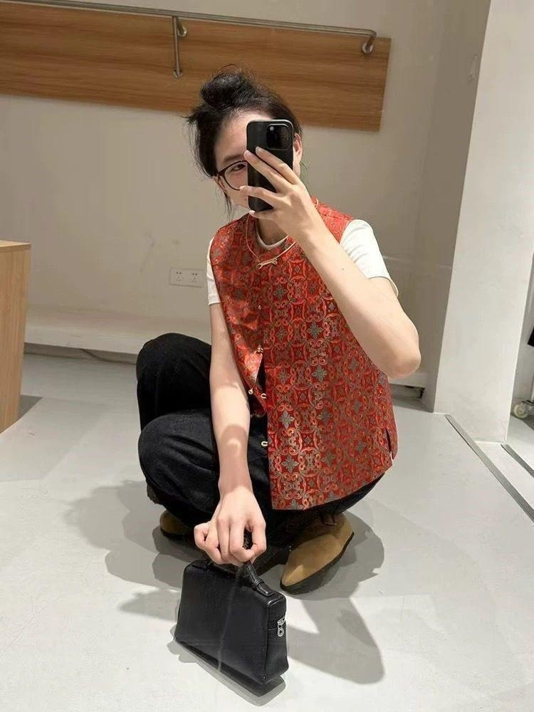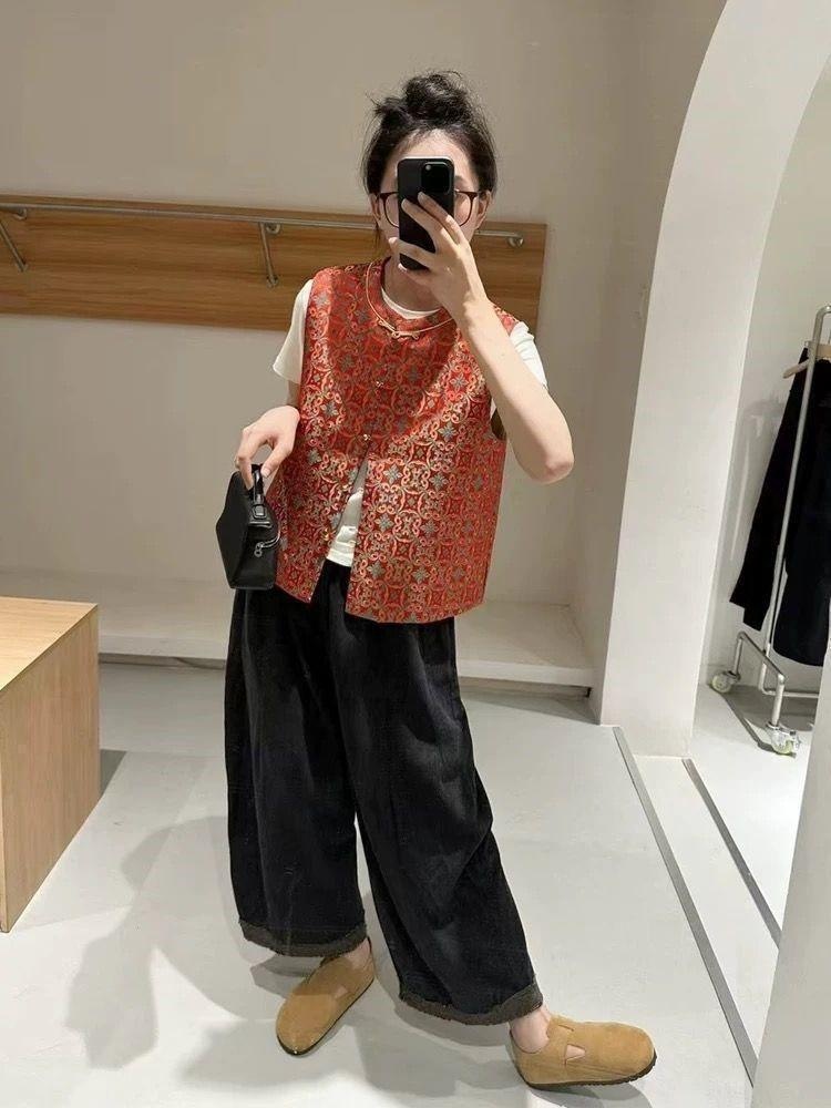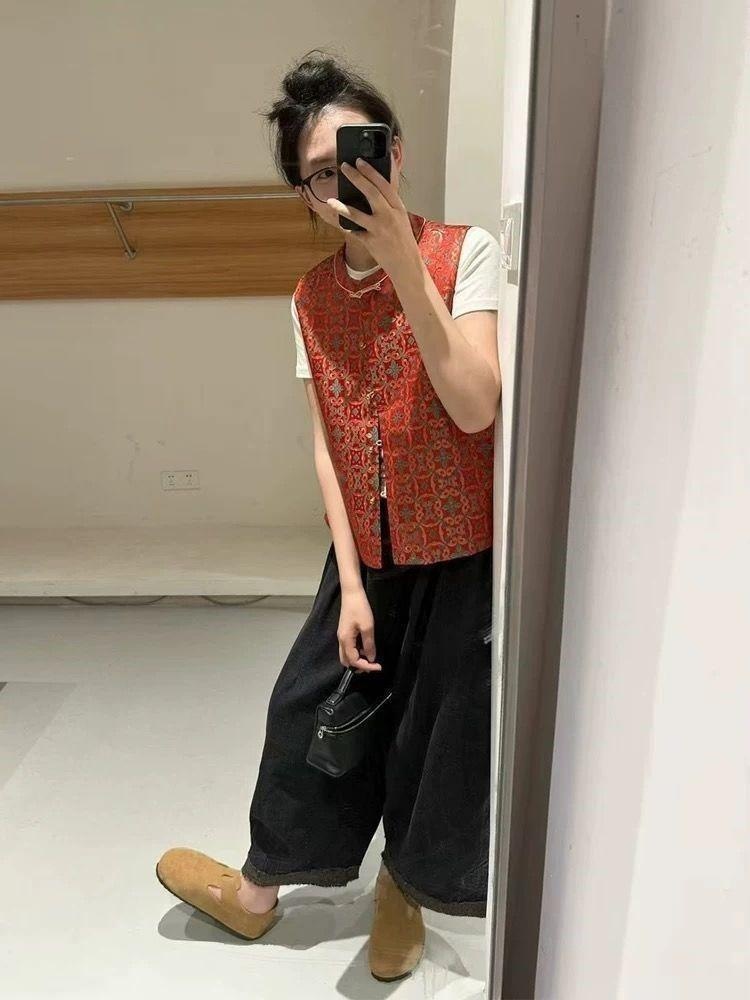 2025年早春流行的新中式国风超好看独特漂亮宋锦盘扣马甲背心女