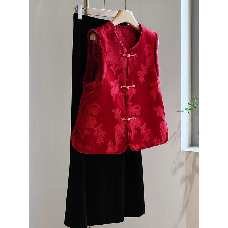 秋冬季新款红色过年款马甲新中式加棉高级感圆领气质显白加厚马夹