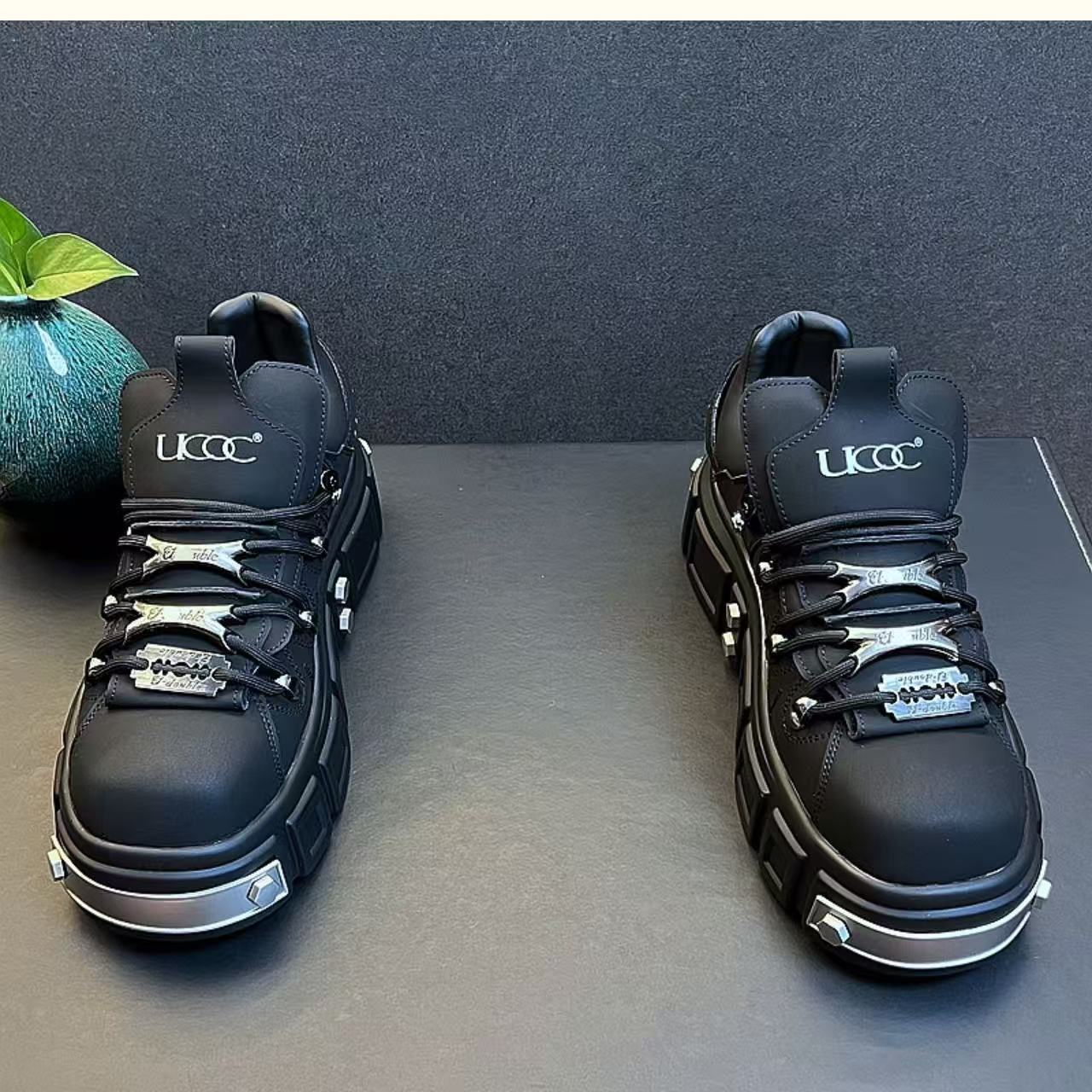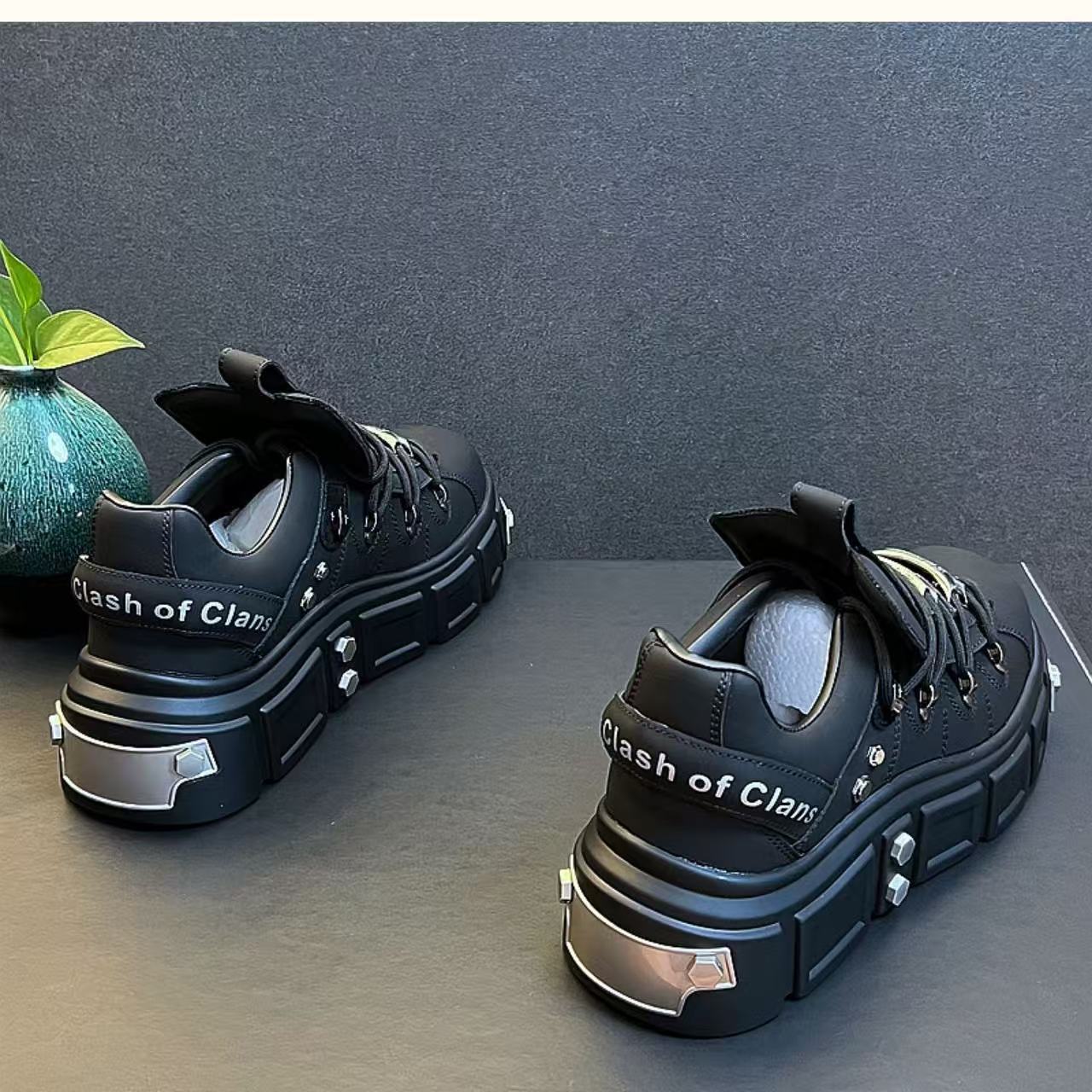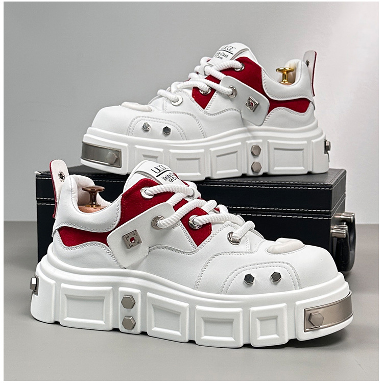 秋季新款高级感厚底老爹鞋欧洲站潮牌朋克柳钉男士隐形内增高男鞋