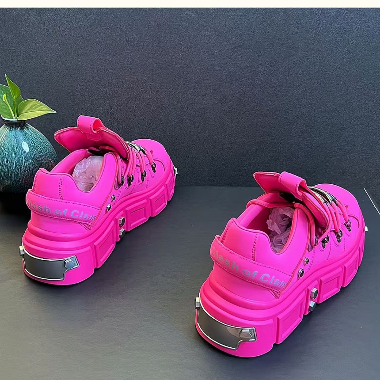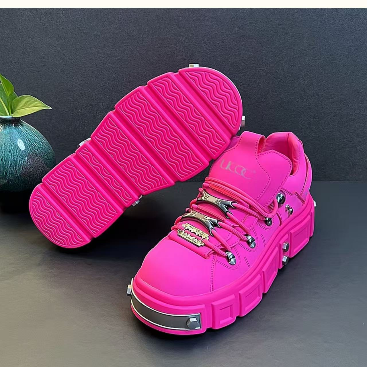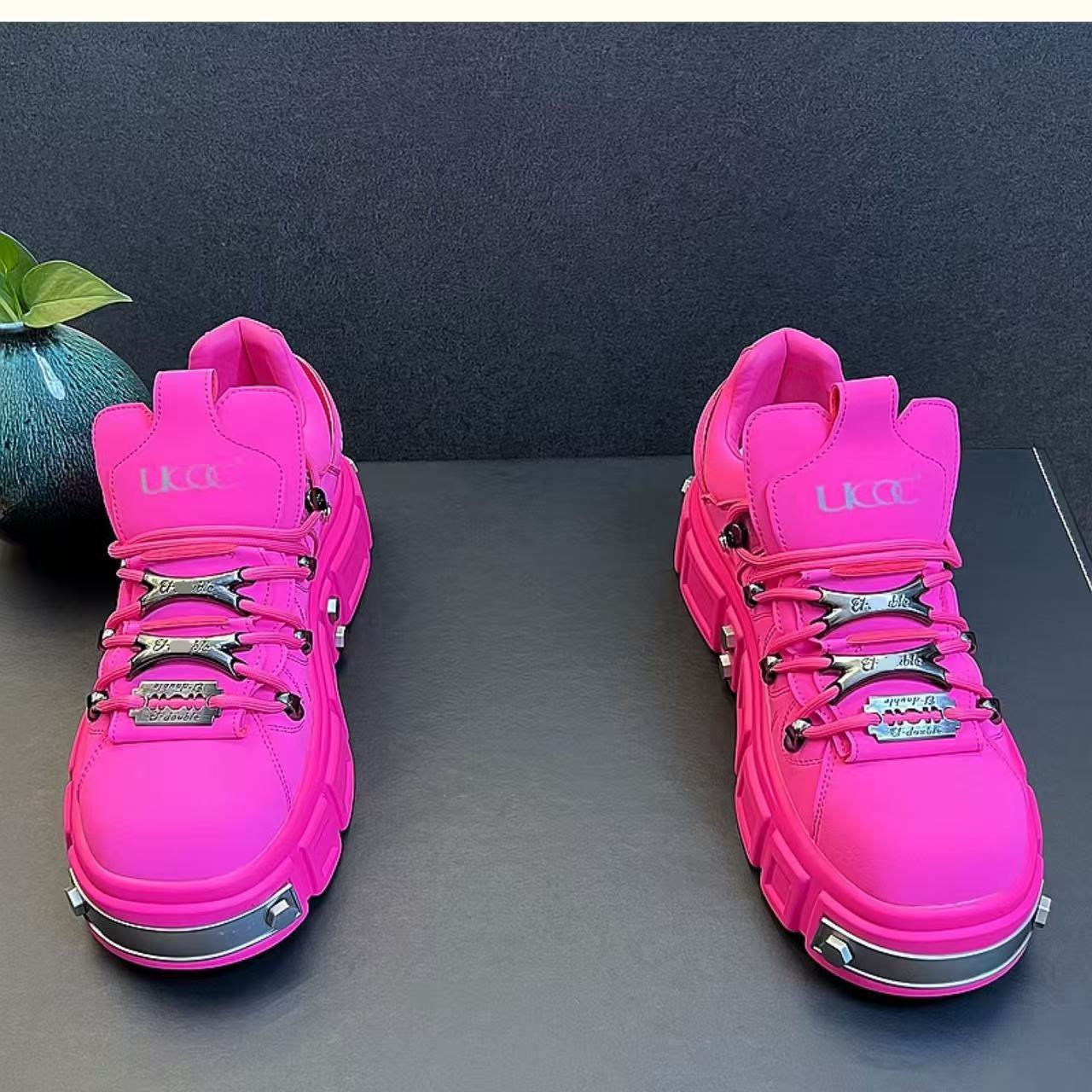 秋季新款高级感厚底老爹鞋欧洲站潮牌朋克柳钉男士隐形内增高男鞋