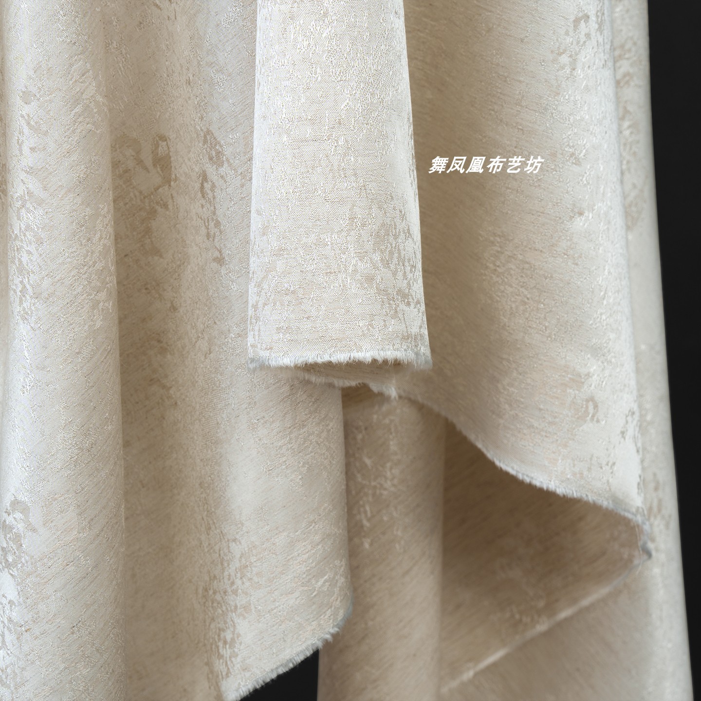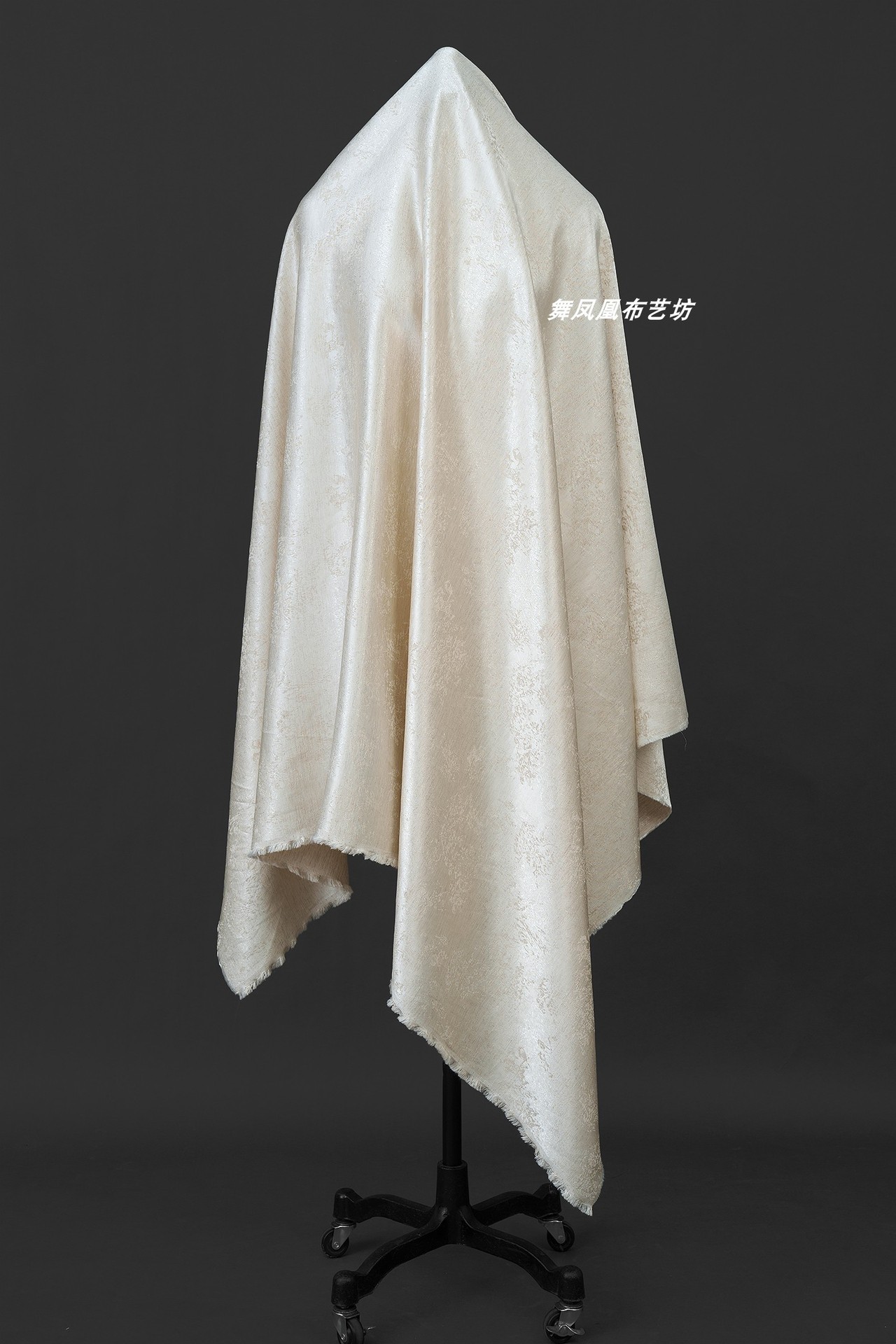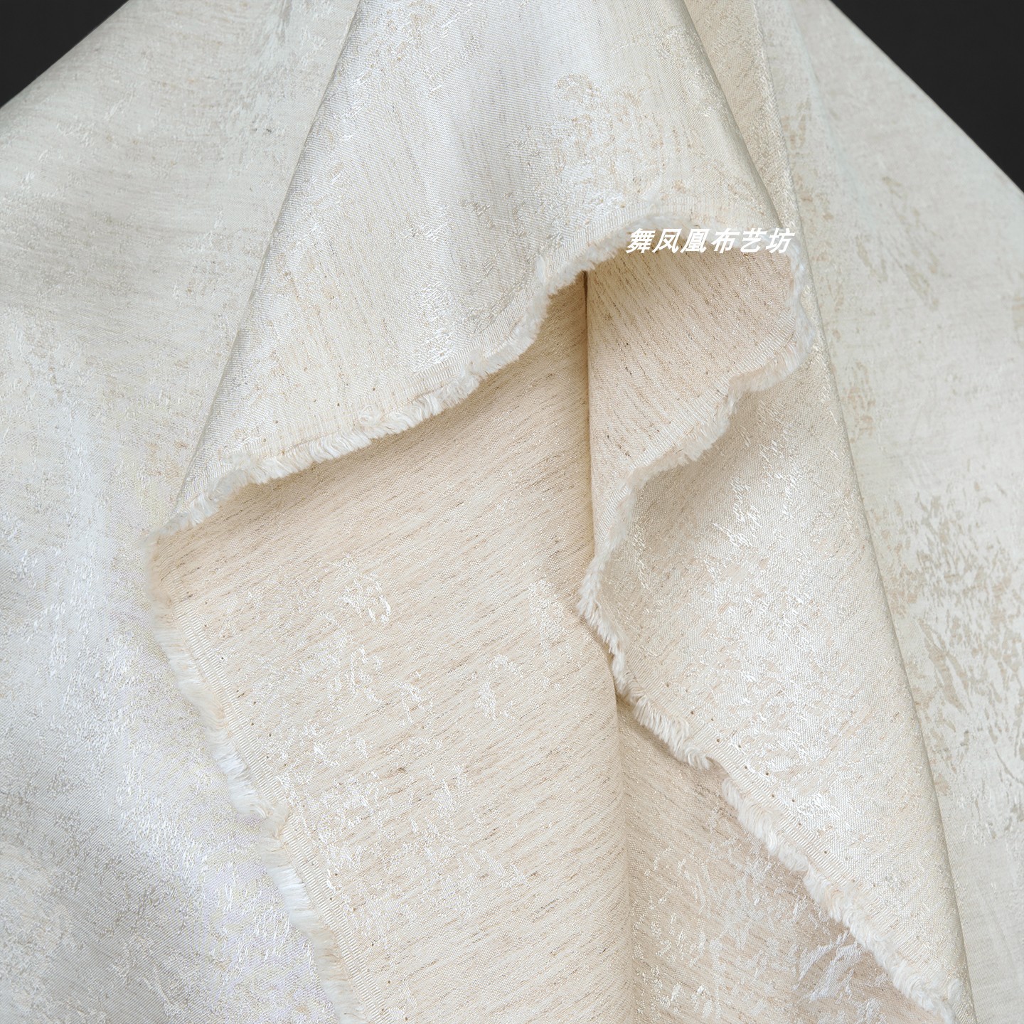 米白色 光泽缎面棉麻提花暗纹面料 中国风柔软外套设计师创意布料