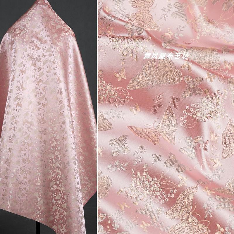 ピンクの蝶の花-錦織ジャカード生地中国式の甘いコート馬甲ワンピース光沢生地