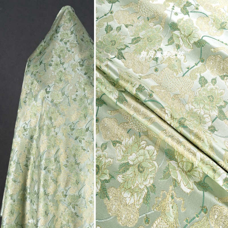 薄緑色の金辺麒麟牡丹織錦織ジャカード生地の金中国式ベストコートは宋錦生地に似せています。