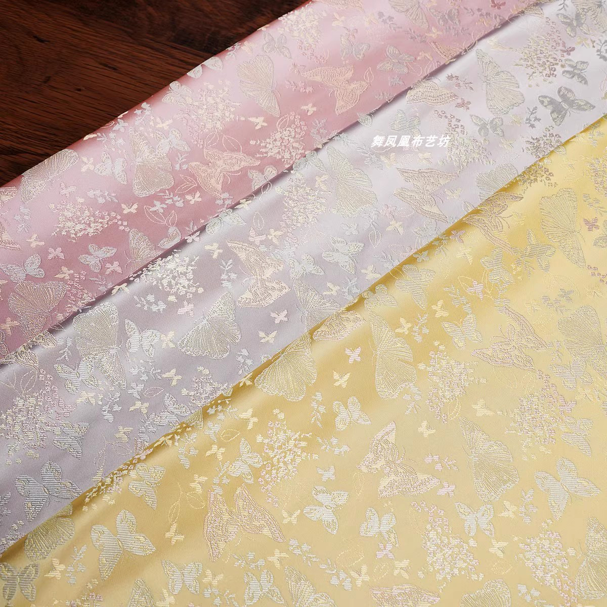 蝶花卉-錦織ジャカード生地中国風コート馬甲糸滑り光沢シミュレーション糸服装生地