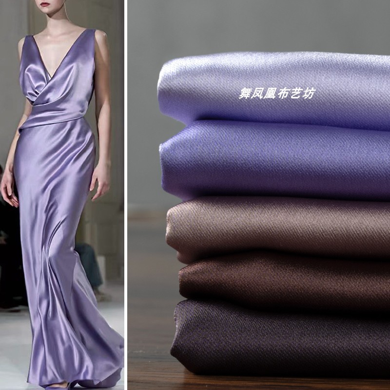 薄い紫色の味噌の紫色のシルクの滑りの酢酸のサテンの生地の光沢感は垂れ下がっています。