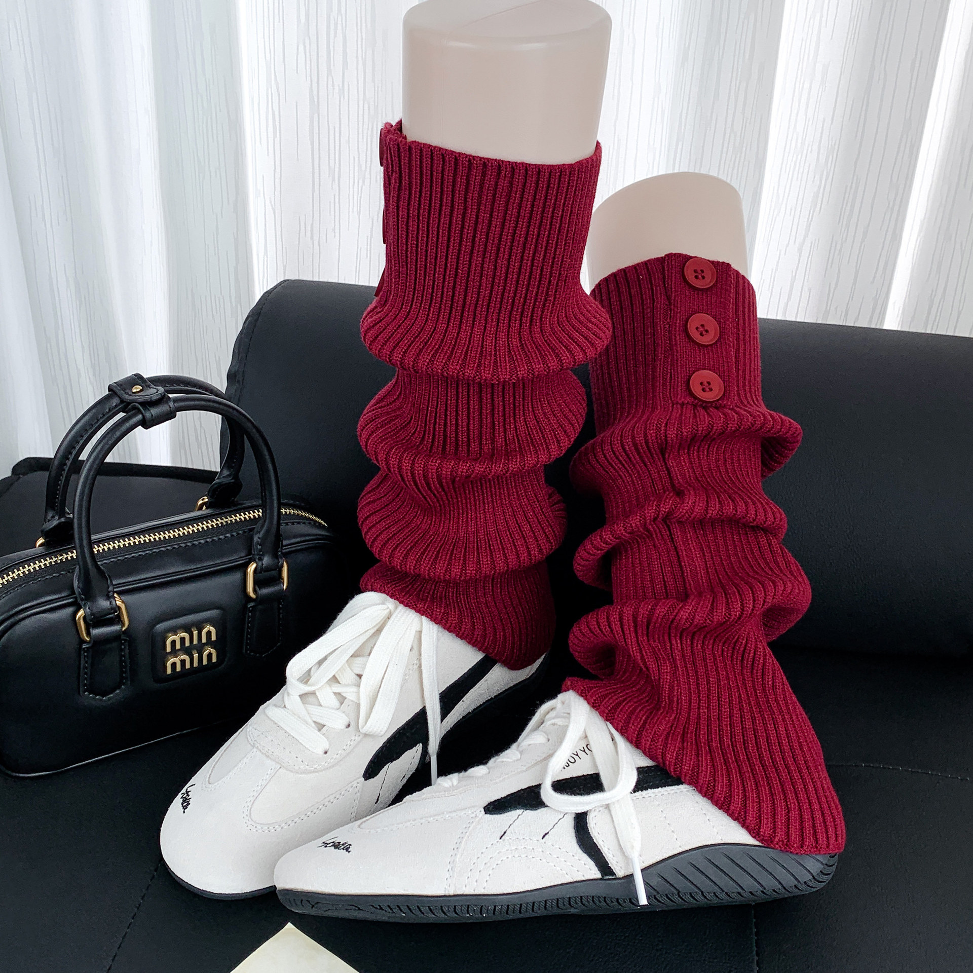 安可拉红堆堆袜套女针织腿套保暖经典慵懒风质感纽扣袜套个性百搭