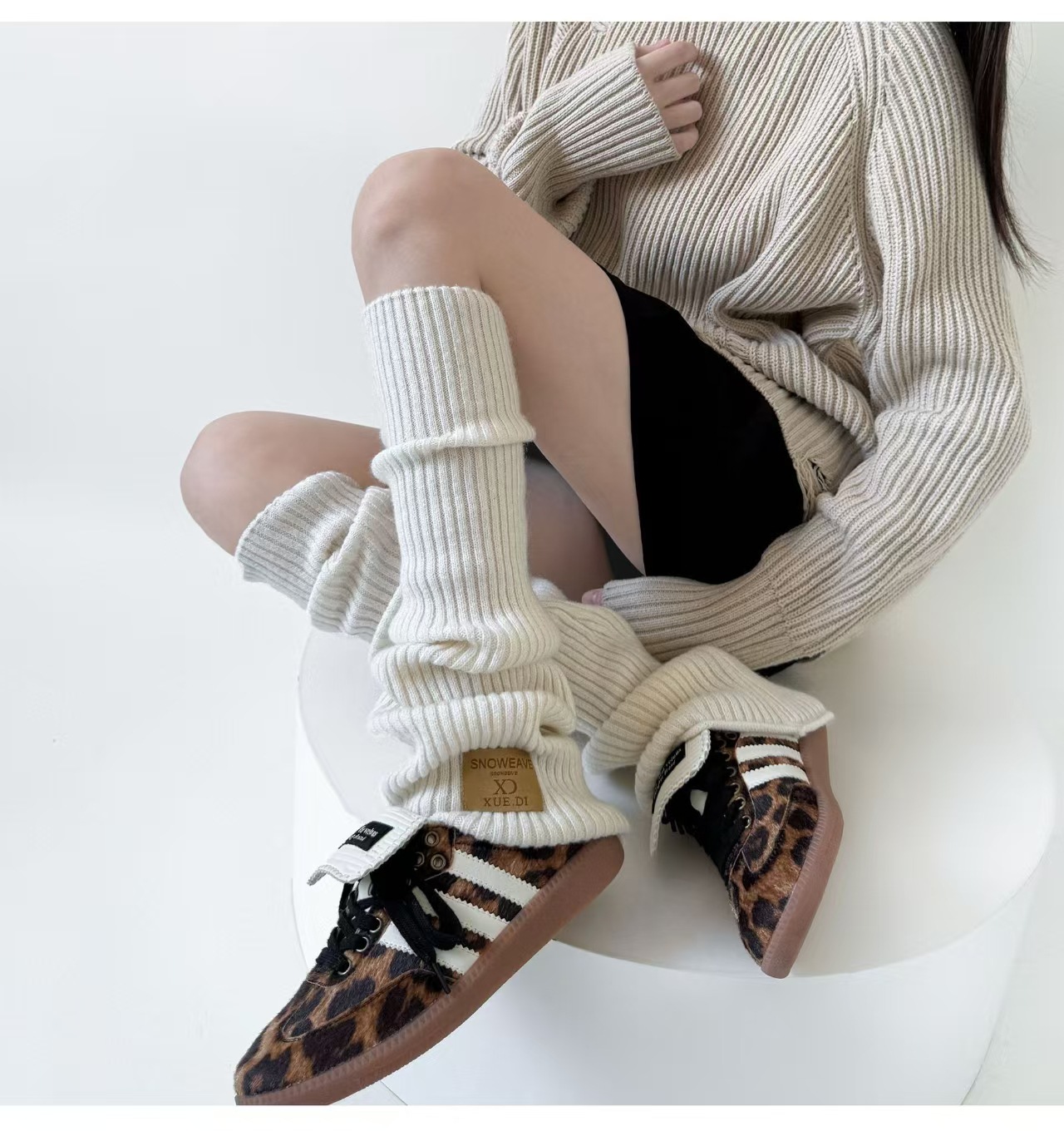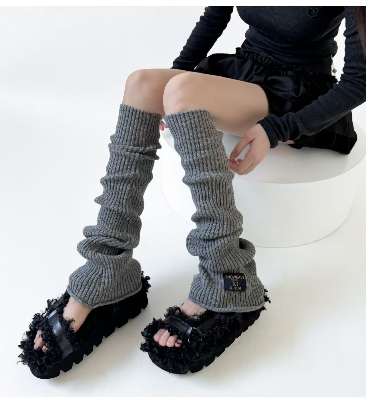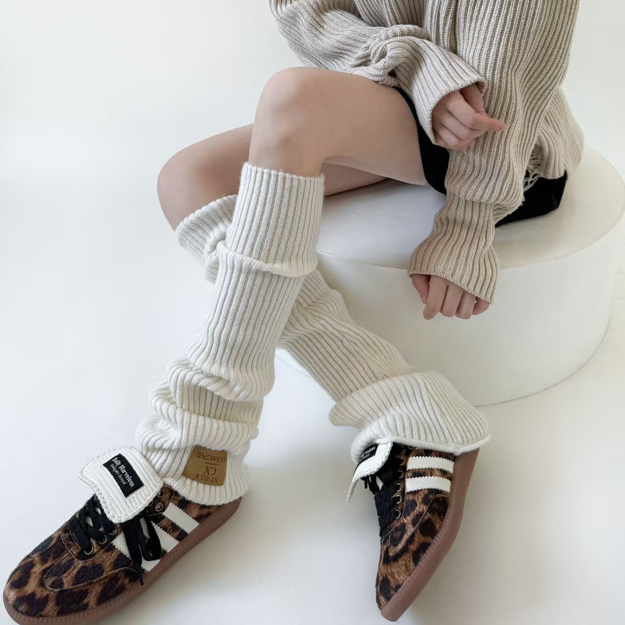 韩系松弛感渐变袜套 金属标装饰 宽松堆堆腿套 秋冬穿搭神器