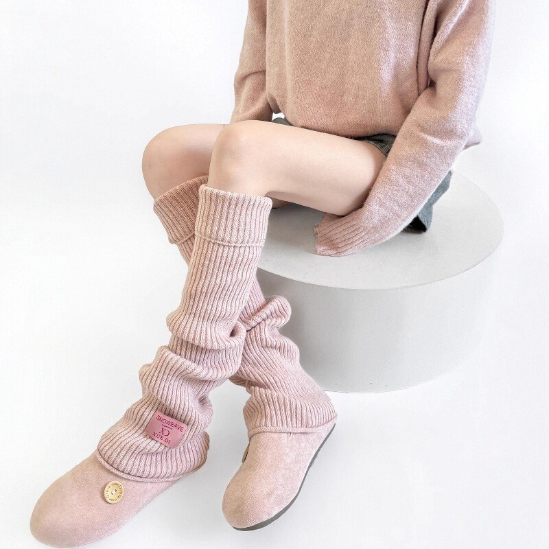 毛绒拼接针织袜套 复古洛丽塔风格 保暖中筒小腿袜