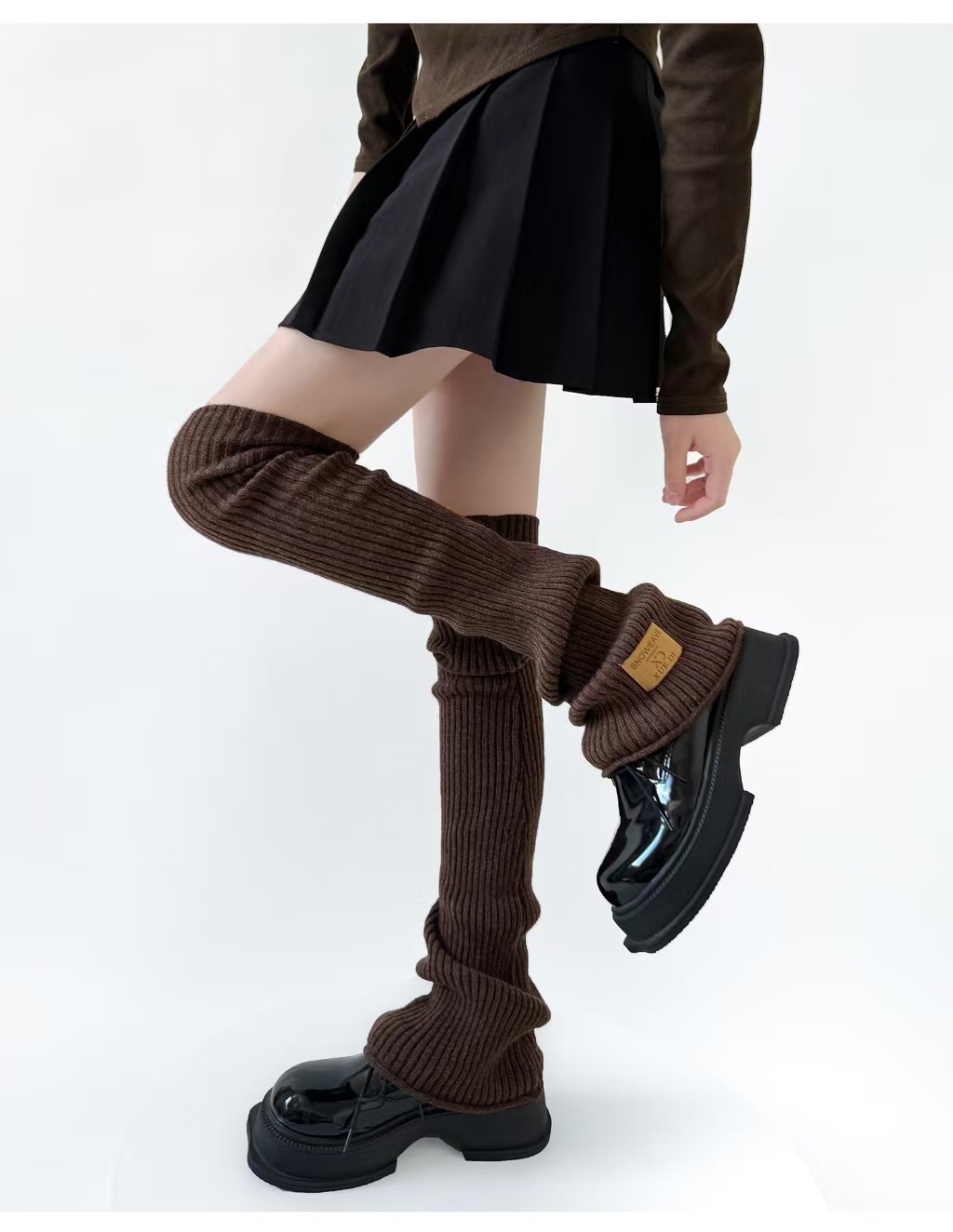 美拉德堆堆袜套辣妹y2k腿袜jk小腿袜子女纯色百搭纽扣棕色腿套