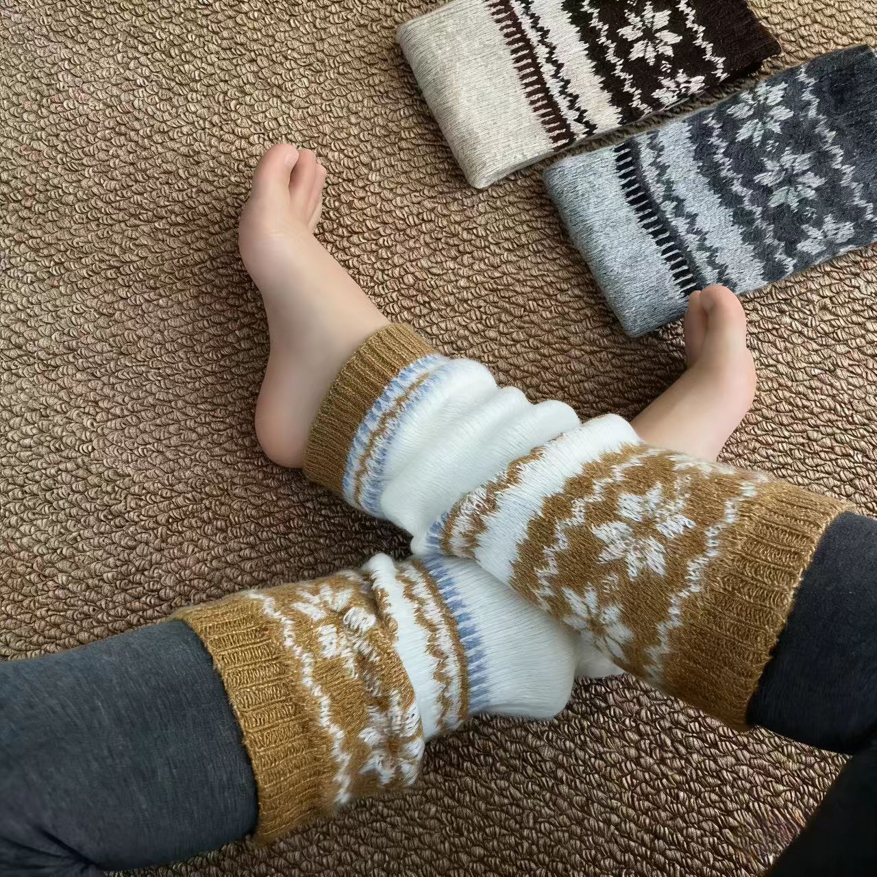 费尔岛复古羊毛袜套秋冬北欧风雪花堆堆袜粗线针织腿套保暖小腿袜