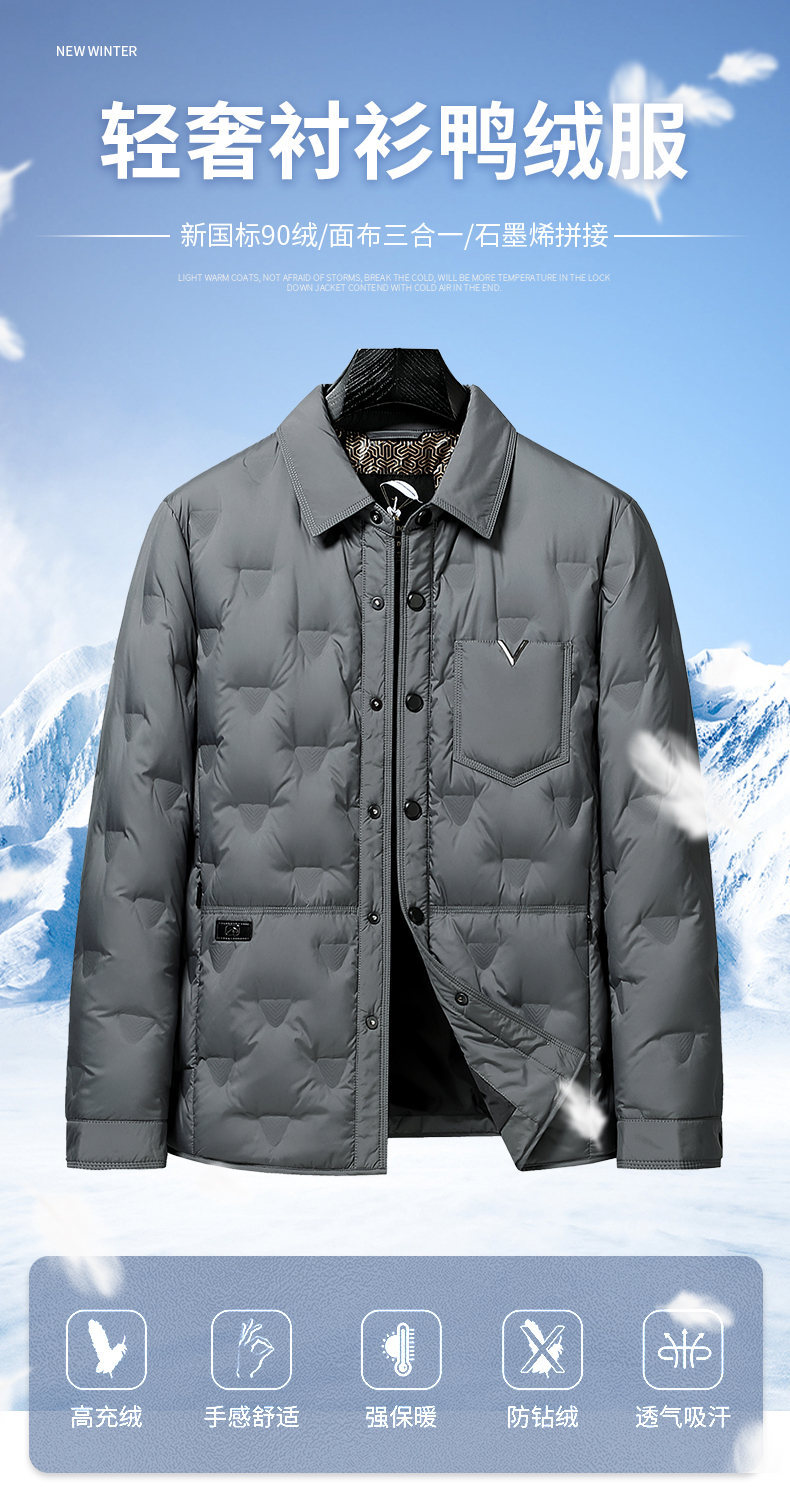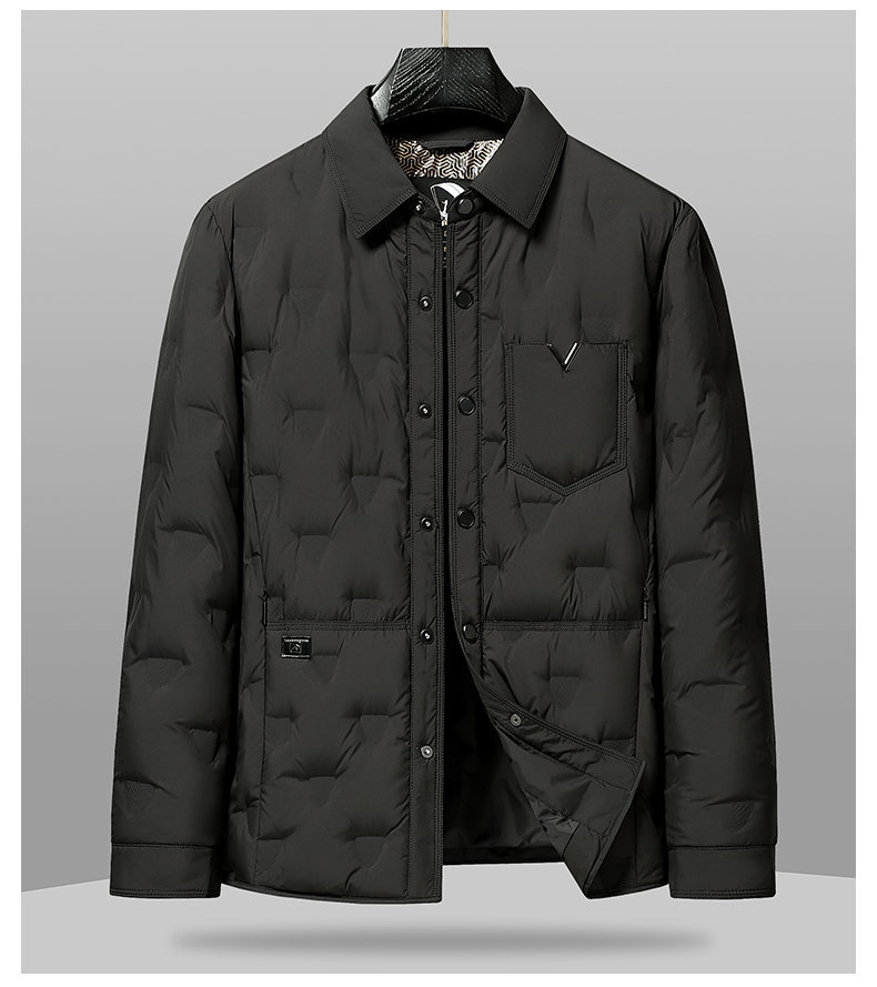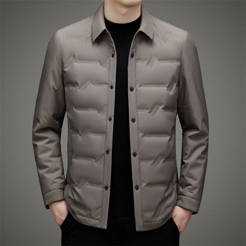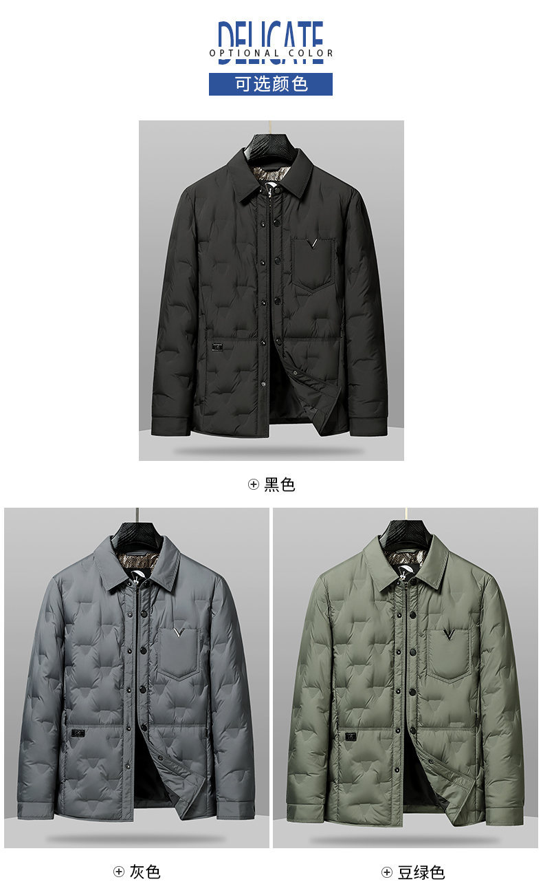 男士轻薄款翻领羽绒服2025冬季新款男装中年休闲简约舒适保暖外套