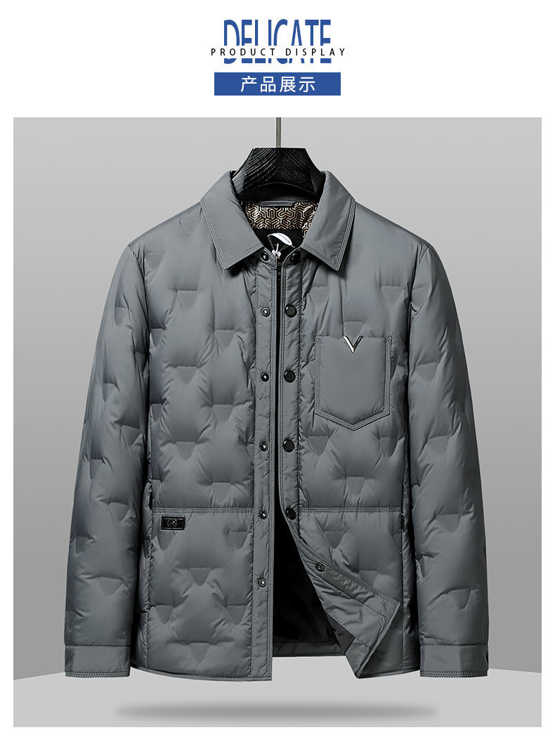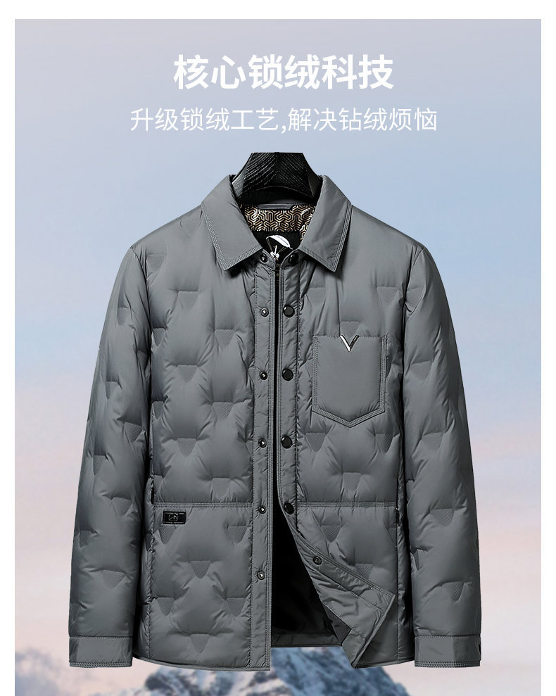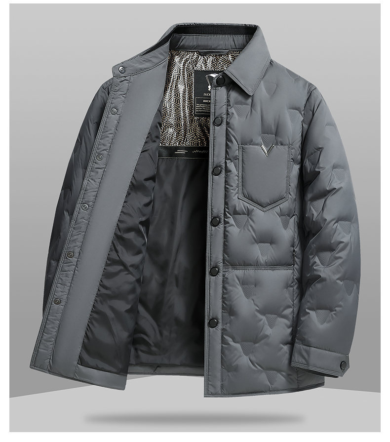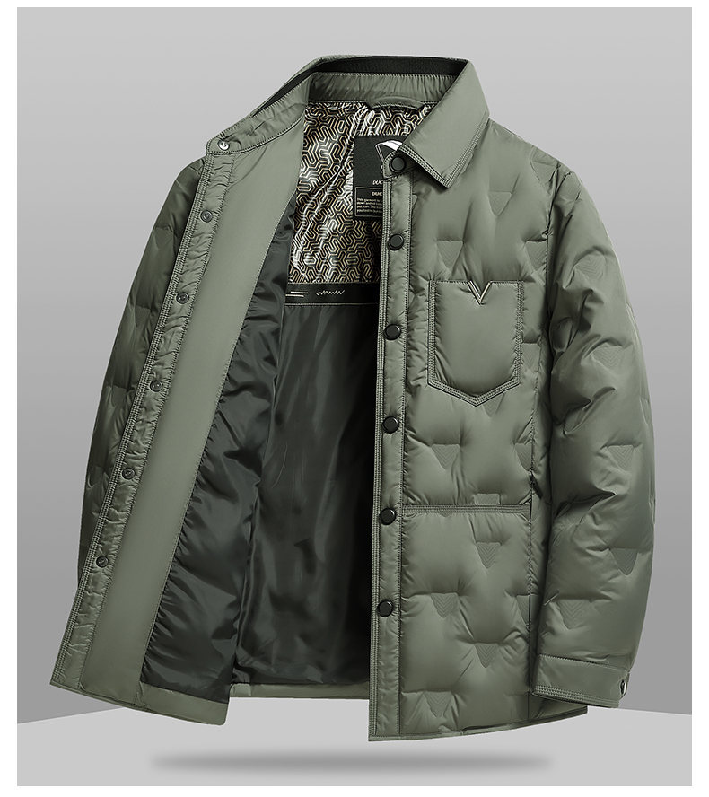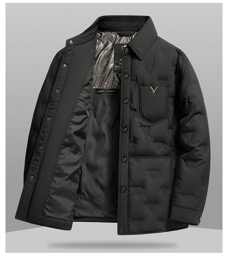 男士轻薄款翻领羽绒服2025冬季新款男装中年休闲简约舒适保暖外套