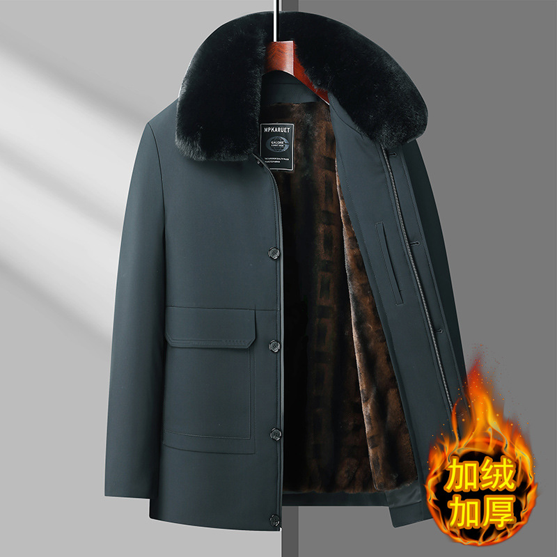 男性は帽子を脱いでダウンジャケットを厚くして、2024冬の新型紳士服中年の広版香港風ビジネスカジュアルコート