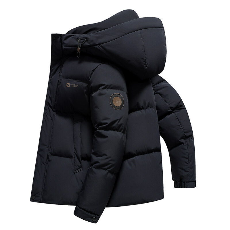男性は帽子付きダウンジャケット2024冬の新しい男性服中年ビジネスカジュアルシンプルな保温パン服を厚くした