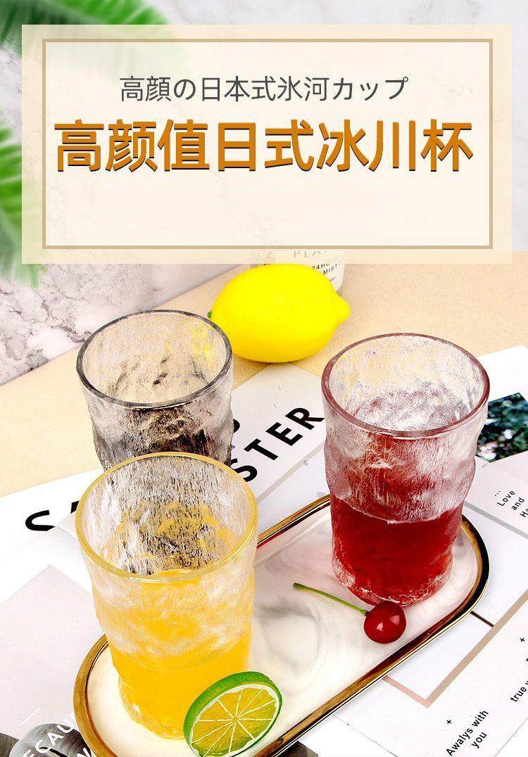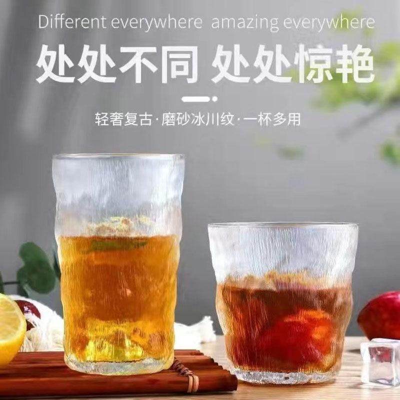 冰川纹玻璃杯ins风网红爆高颜值水杯家用喝水果汁饮料咖啡杯子