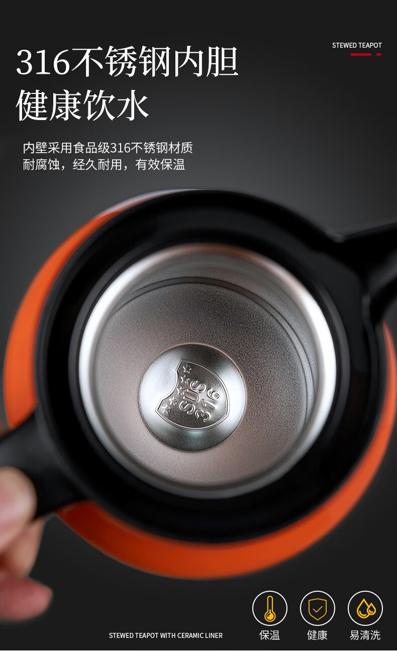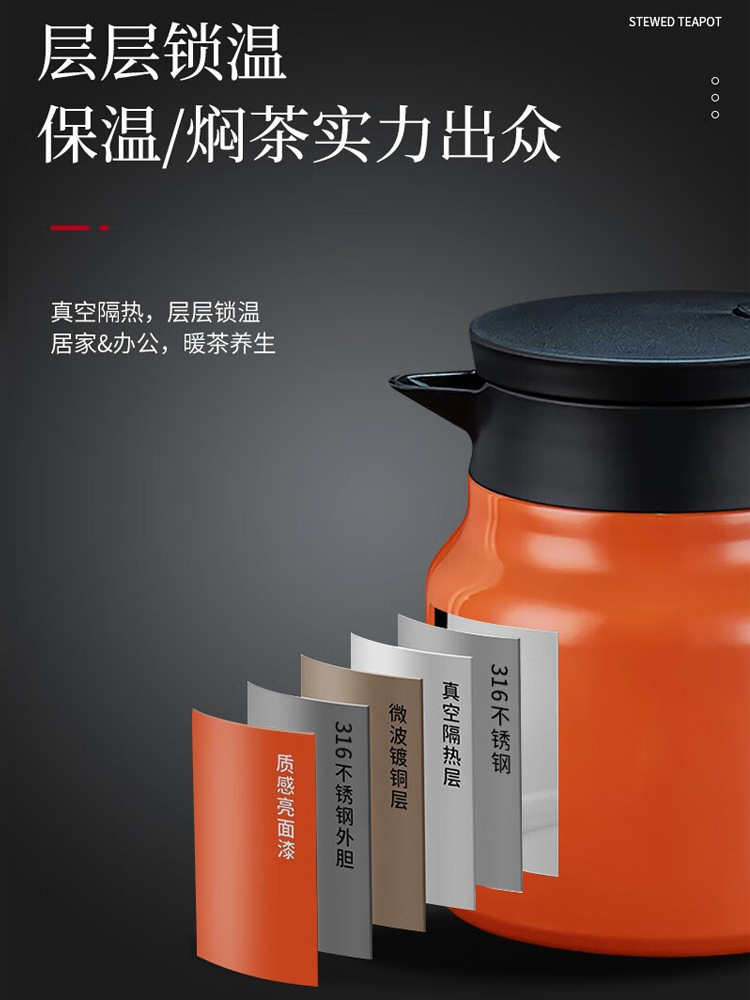 316焖茶壶不锈钢老白茶泡茶保温壶显温家用办公闷泡壶大容量闷茶