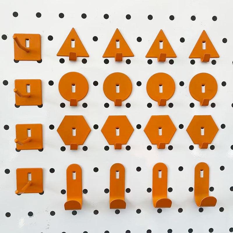 圆孔洞洞板配件桌面置物架挂钩橙色墙面收纳钩子货架展示铁挂钩