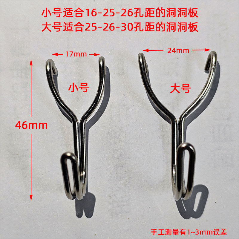 超市货架展示架钩子 墙面收纳Y字钩双脚钩 304不锈钢洞洞板挂钩
