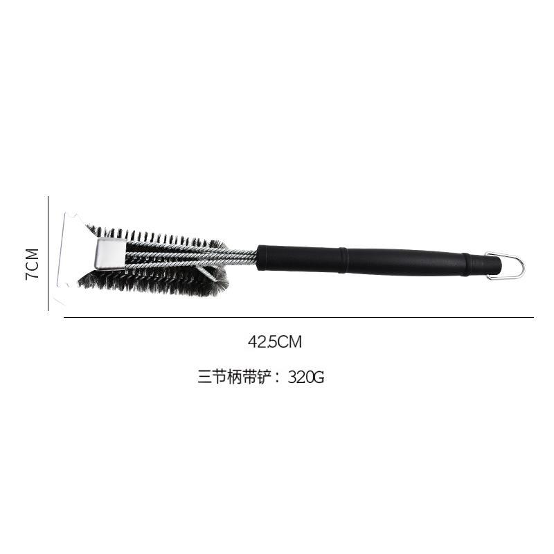 跨境烧烤刷清洁刷不锈钢钢丝刷油刷烧烤架烤炉烤网清洁三头带刮刀