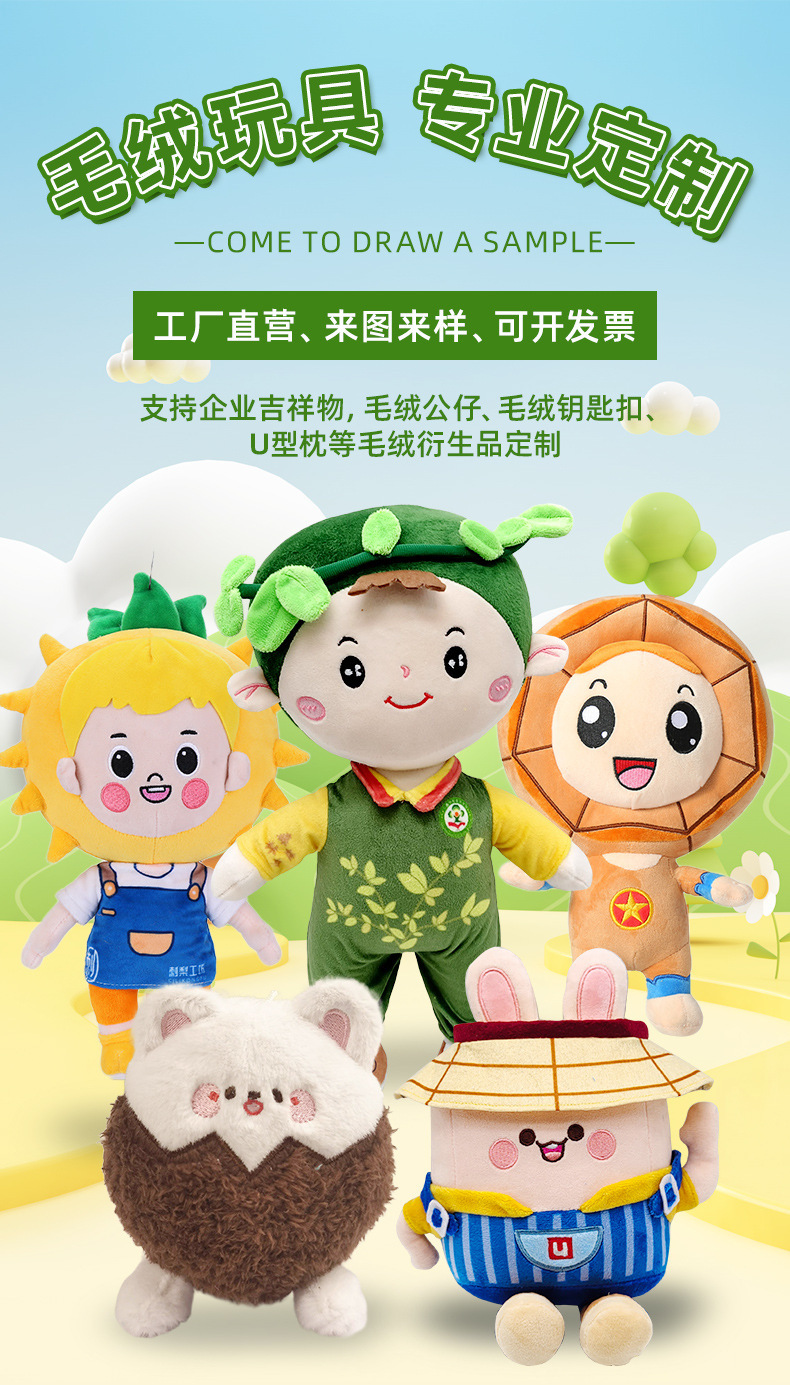 毛绒公仔定制吉祥物玩偶定做文创周边生产布娃娃来图订制加logo