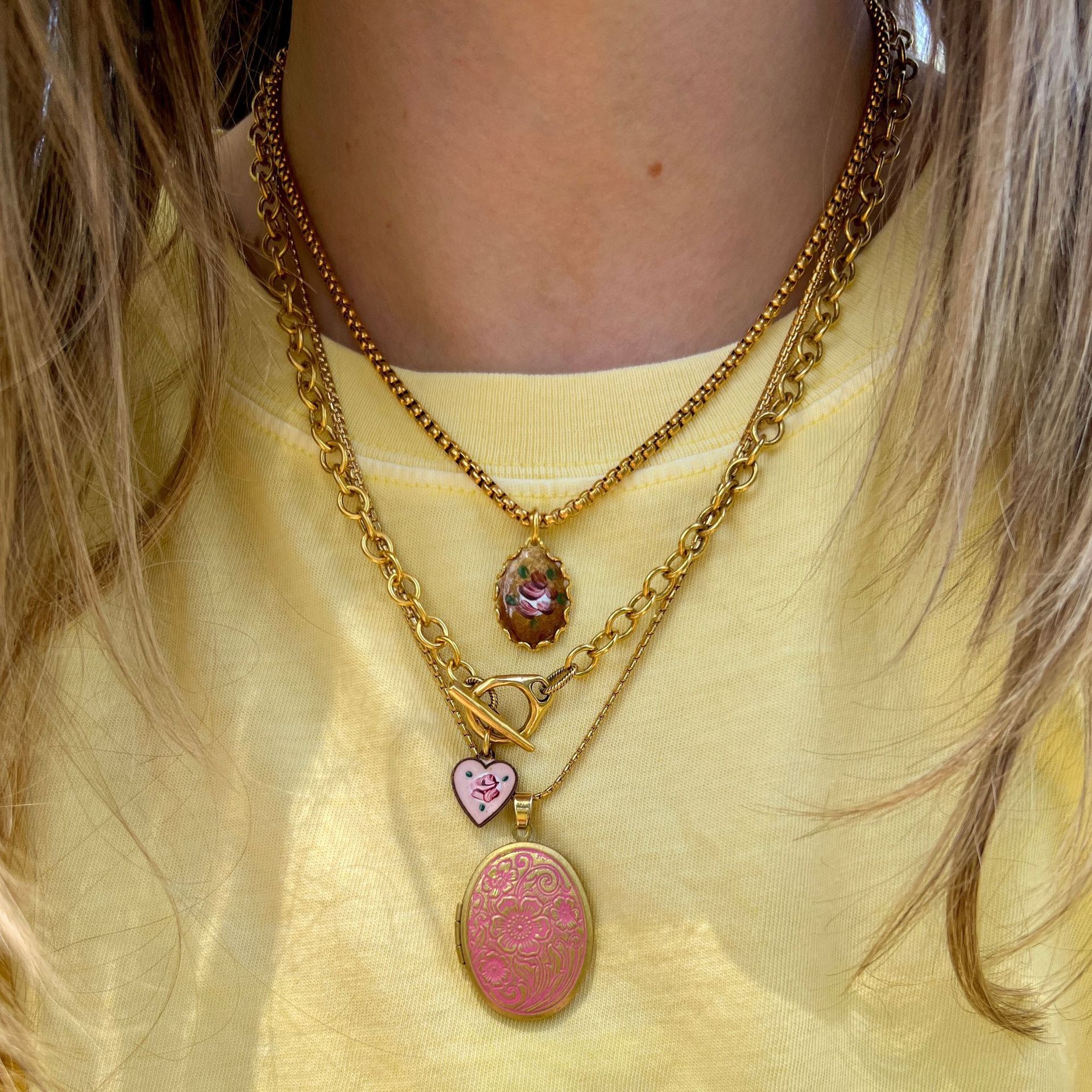 新款跨境复古印花椭圆爱心项链女欧美流行彩色波西米亚风个性饰品
