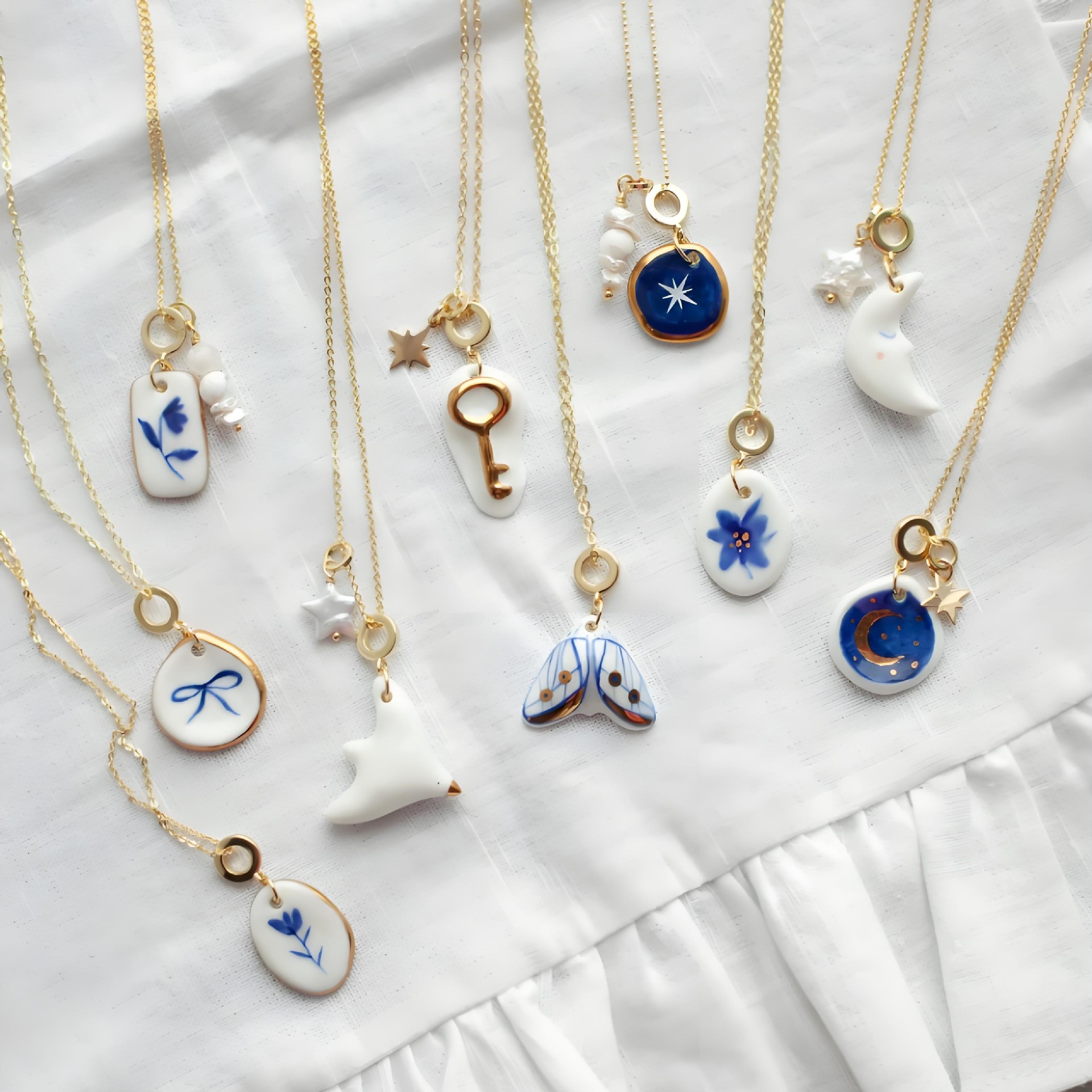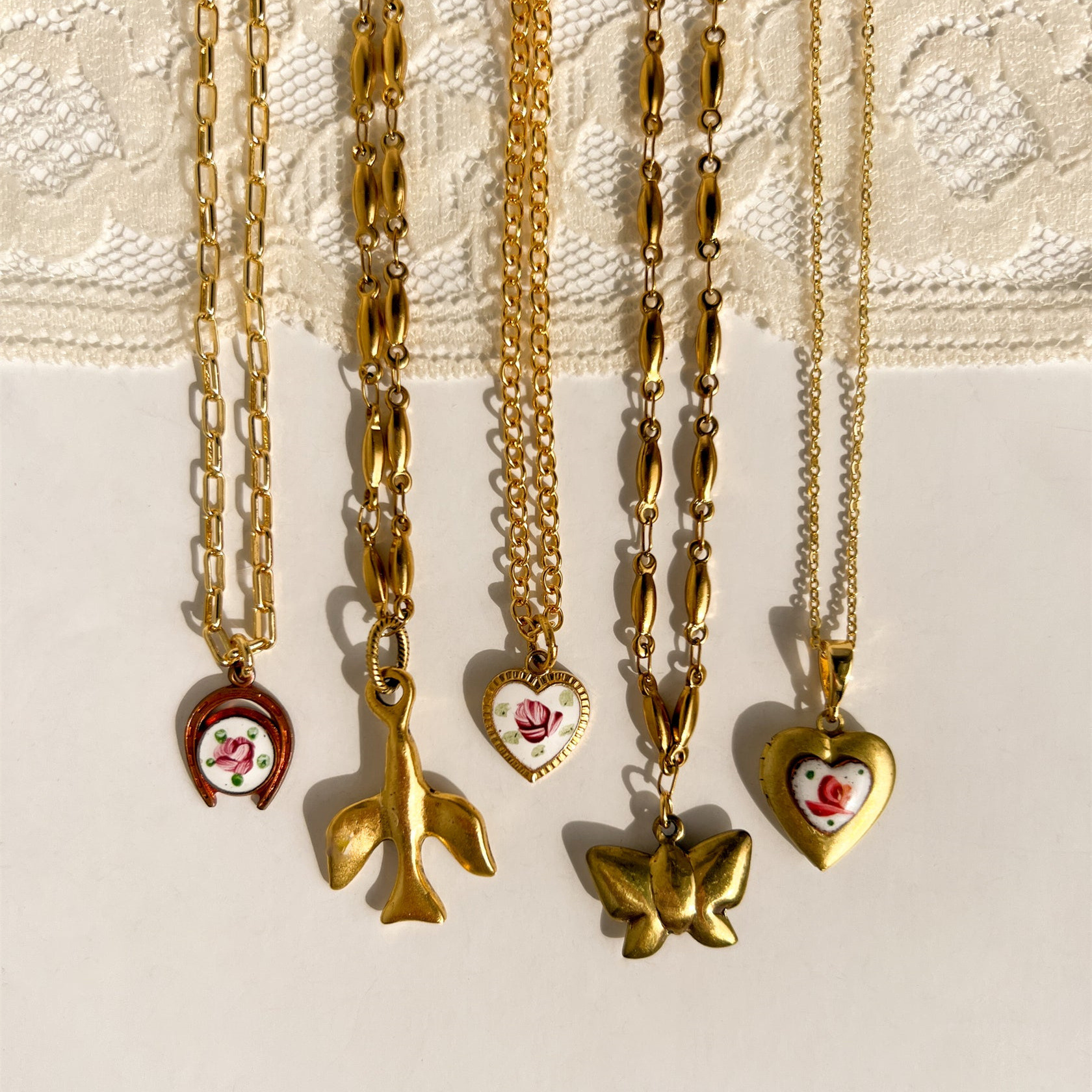 ヨーロッパとアメリカのクロスボーダーレトロネックレスリボンフラワースターキー鳩ムーンパールペンダント18k色保持