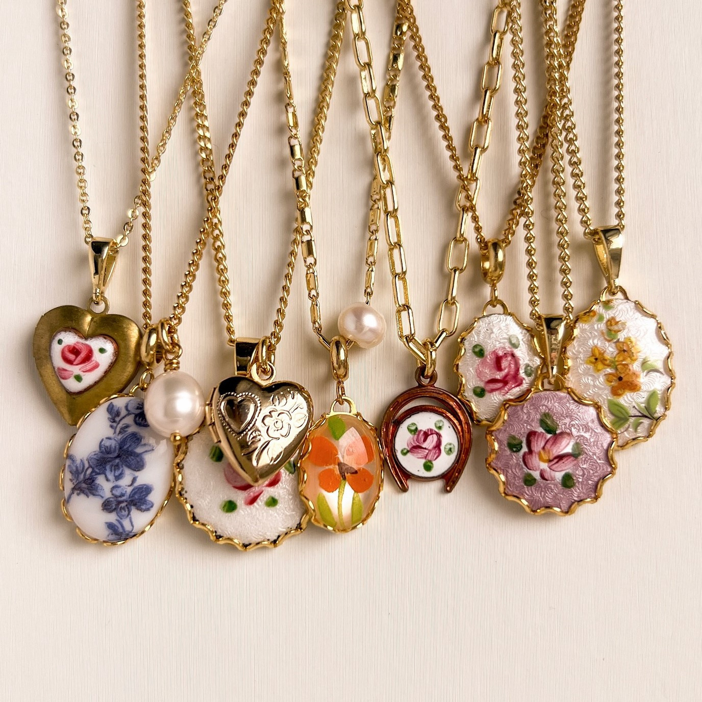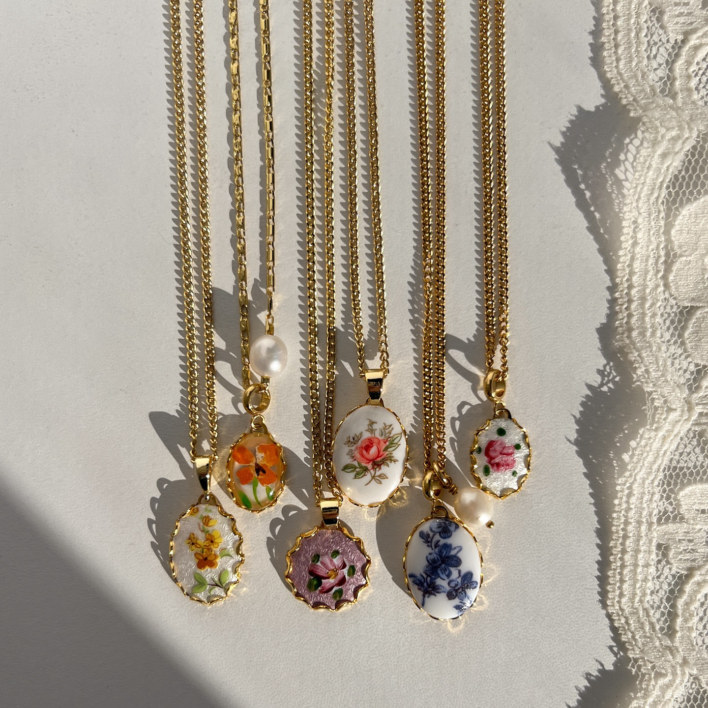 Ins爆金フランスレトロ油絵風花卉ペンダント