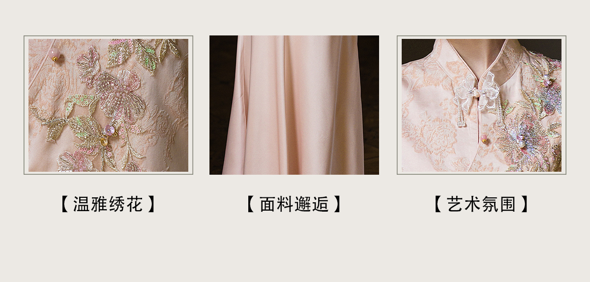 粉色新中式订婚礼服裙旗袍套装5年新新娘敬酒服便装晨袍小众