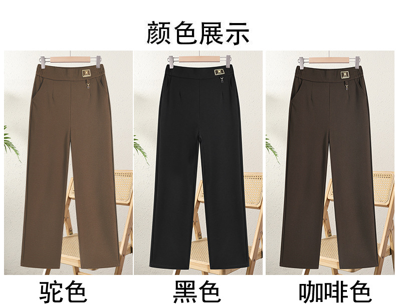 时尚仿毛呢裤女秋冬直筒阔腿裤新款中年妈妈加绒加厚保暖长裤子