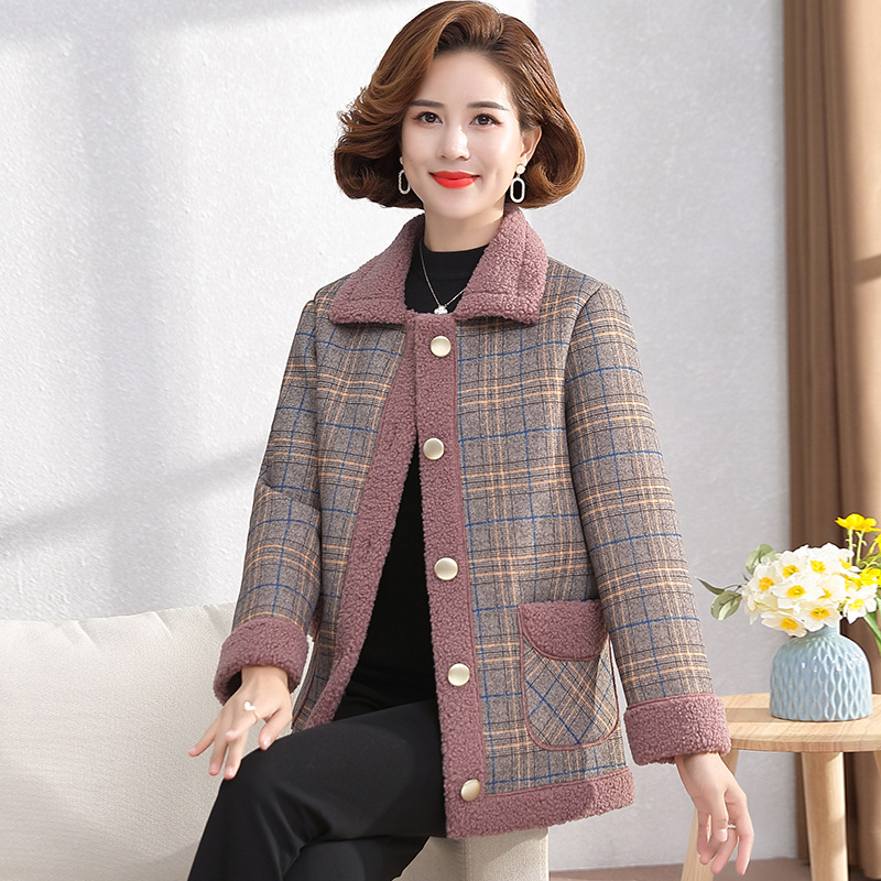 2023秋冬の新型のお母さんはベルベットを着て、顆粒のベルベットを厚くして、中老婦人服の冬服の保温上着を着ている