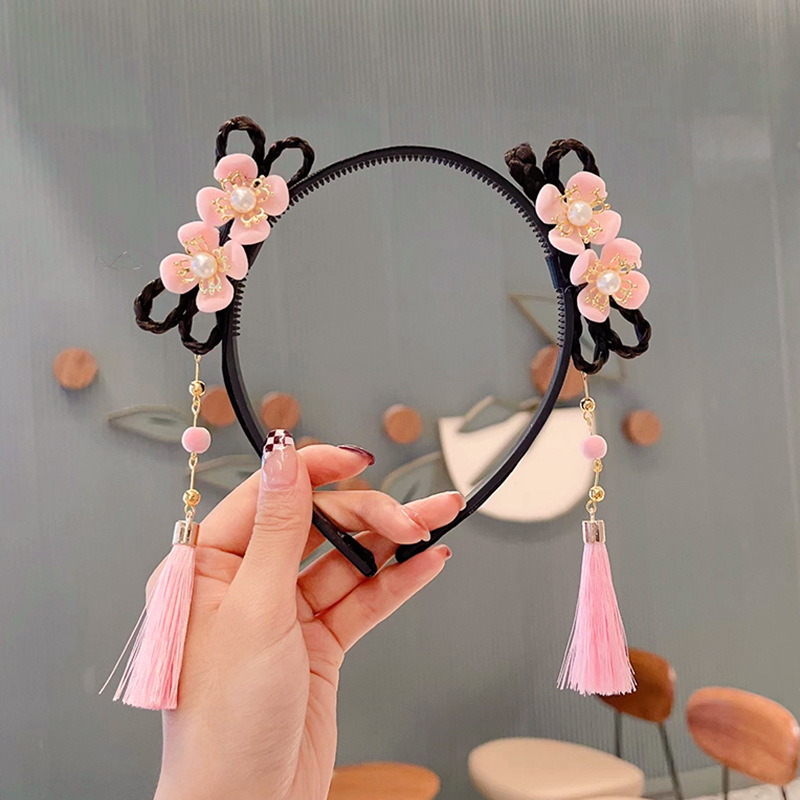 古风头箍宝宝儿童可爱假发辫子花朵流苏发箍小女孩中国风发饰