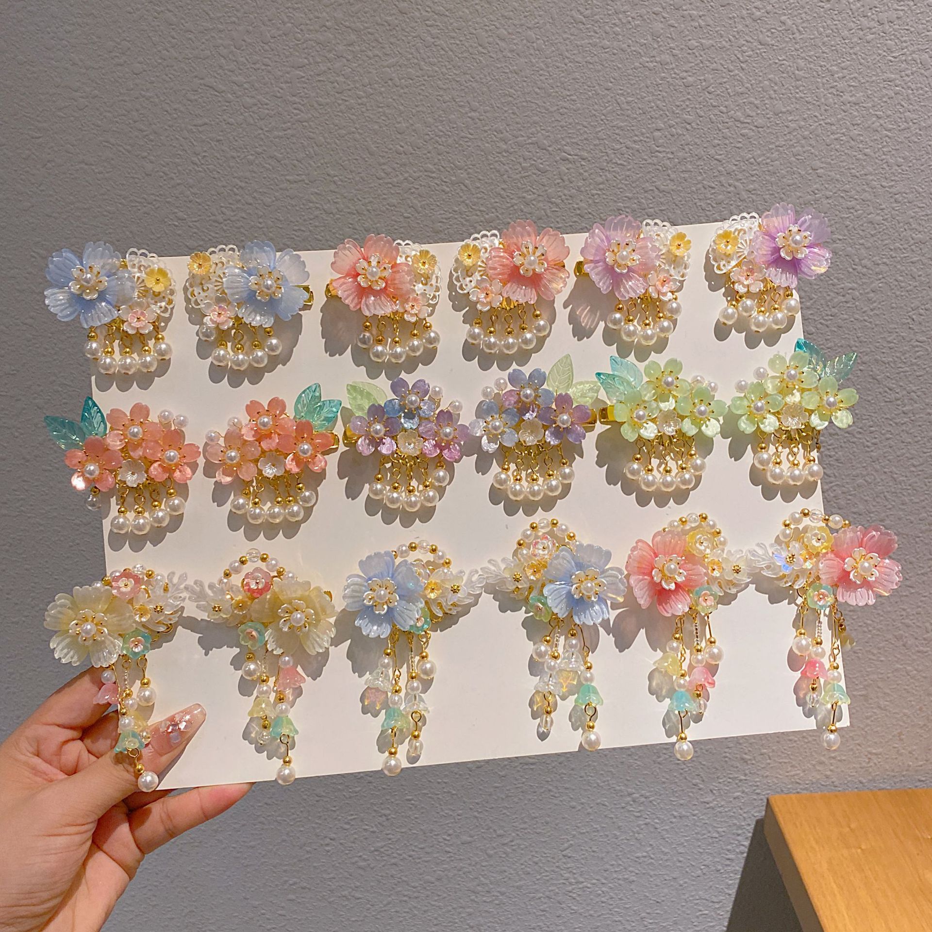 漢服アクセサリー子供用ヘアアクセサリー古代風フリンジ女の子用ヘアアクセサリープリンセスフラワーヘアピンヘアクリップ子供用ヘアアクセサリー