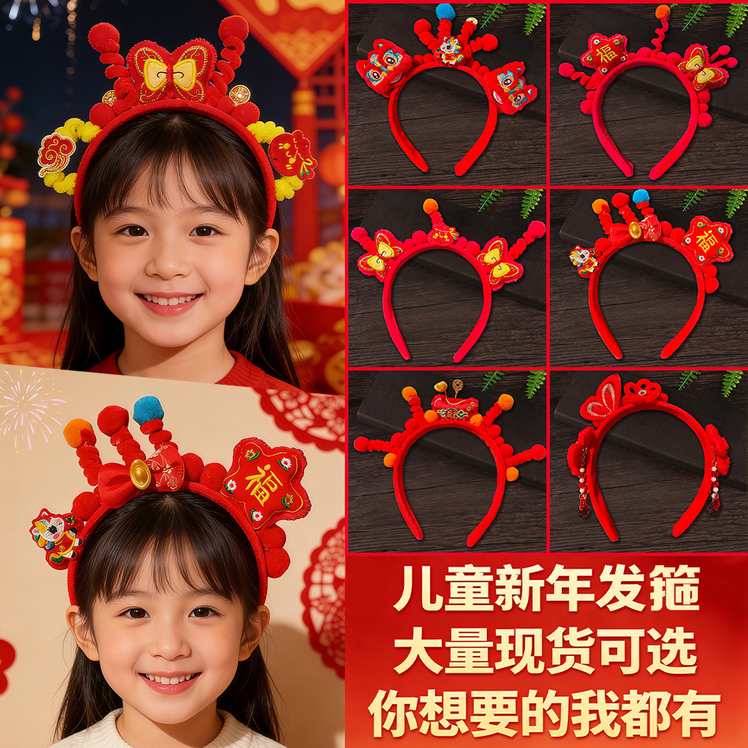 儿童红色新年发箍小女孩中国风喜庆头箍2026新款过年拜年发卡头饰