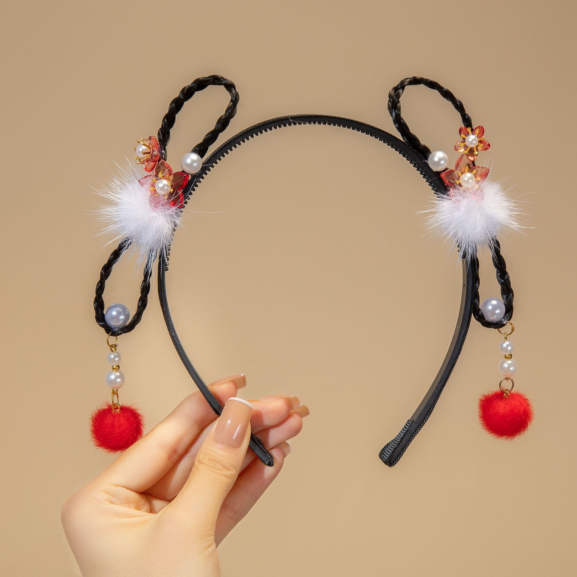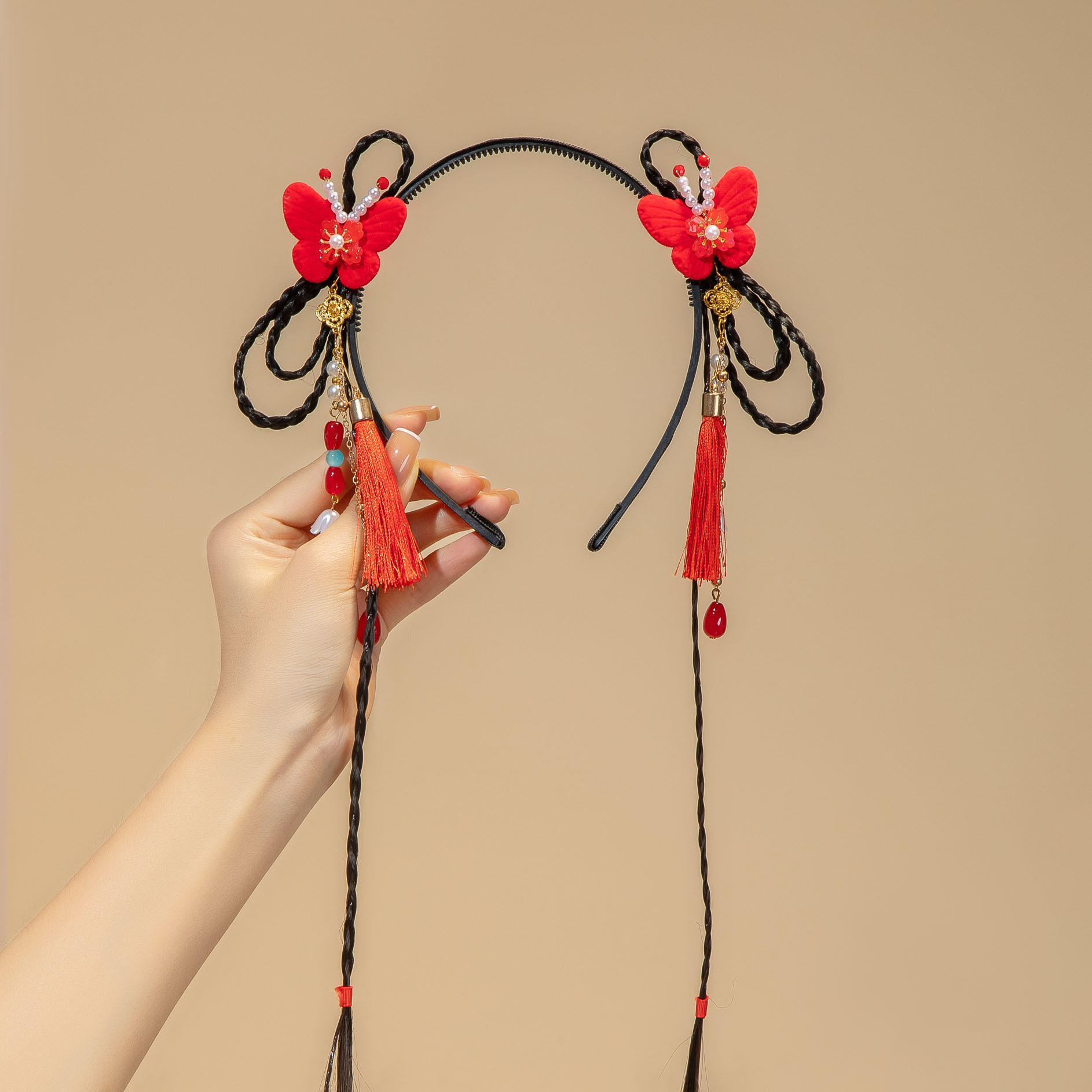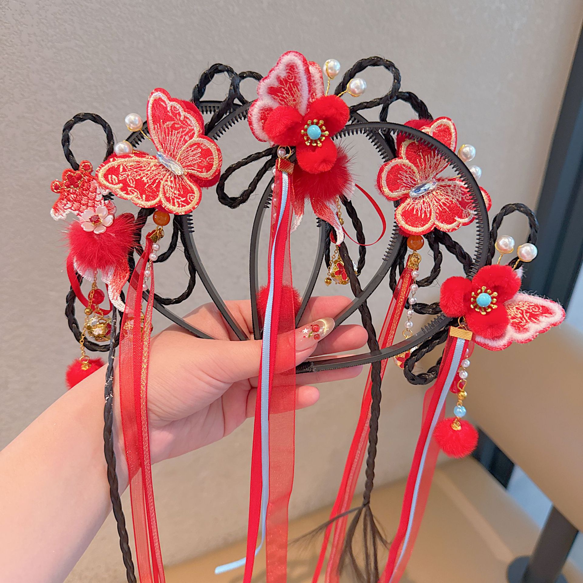 古风红色头花头箍头饰儿童可爱假发辫子发箍小女孩中国风发卡发饰