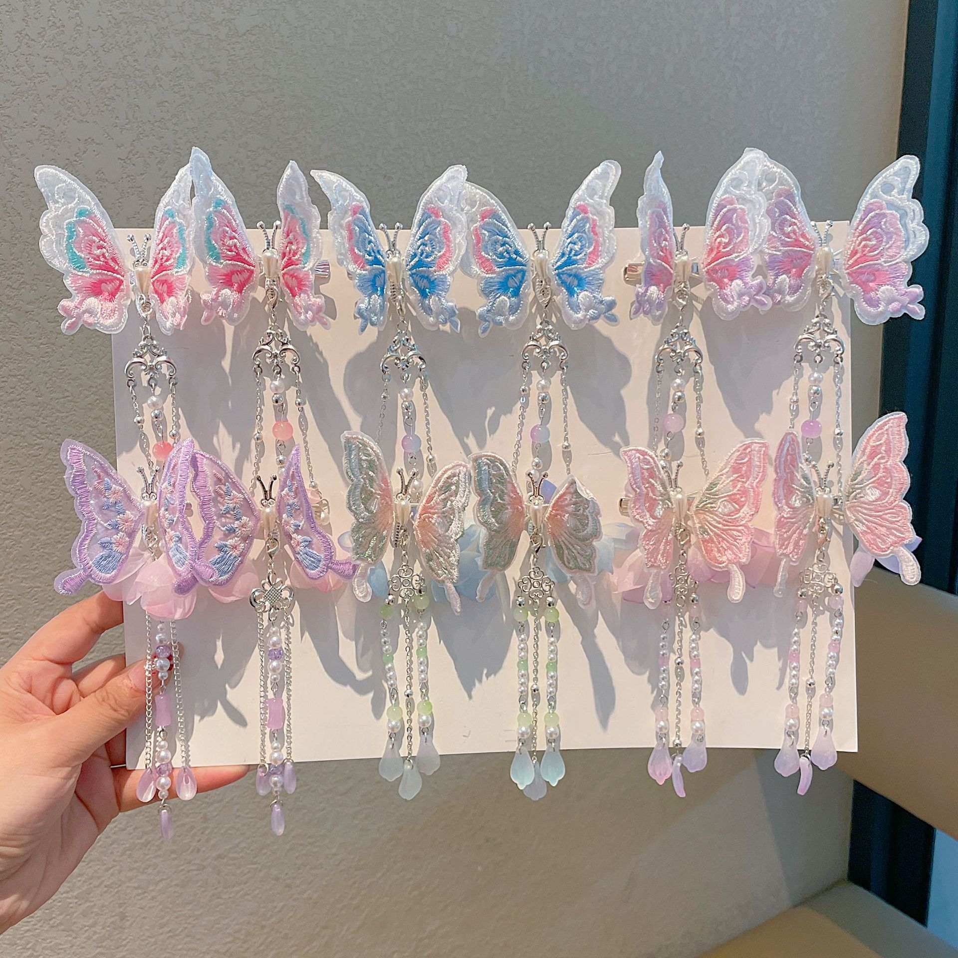 子供用パール蝶々ヘアピン、女の子用編み込みヘアチェーン、タッセルヘアゴム、女の子用ヘアピン、プリンセスヘアアクセサリー、エスニック風