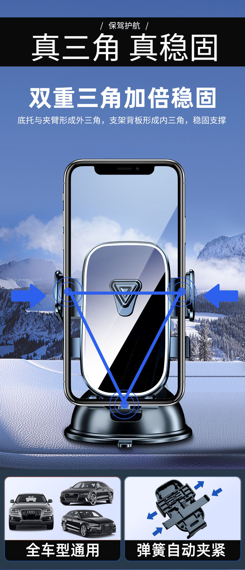 新款跨境吸盘车载手机支架出风口通用导航支架新能源汽车用品