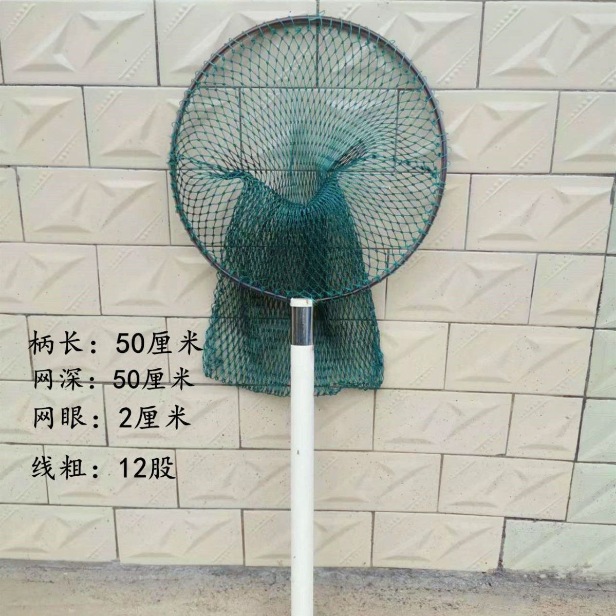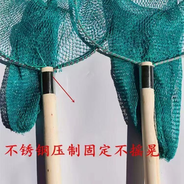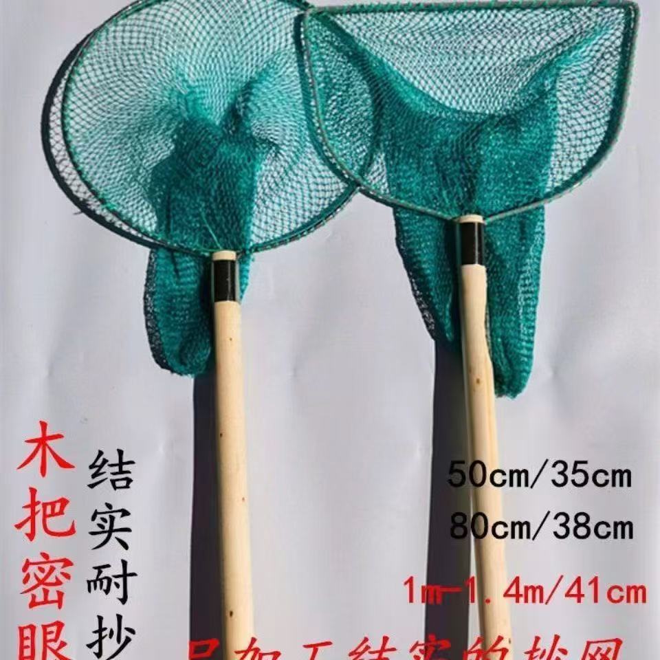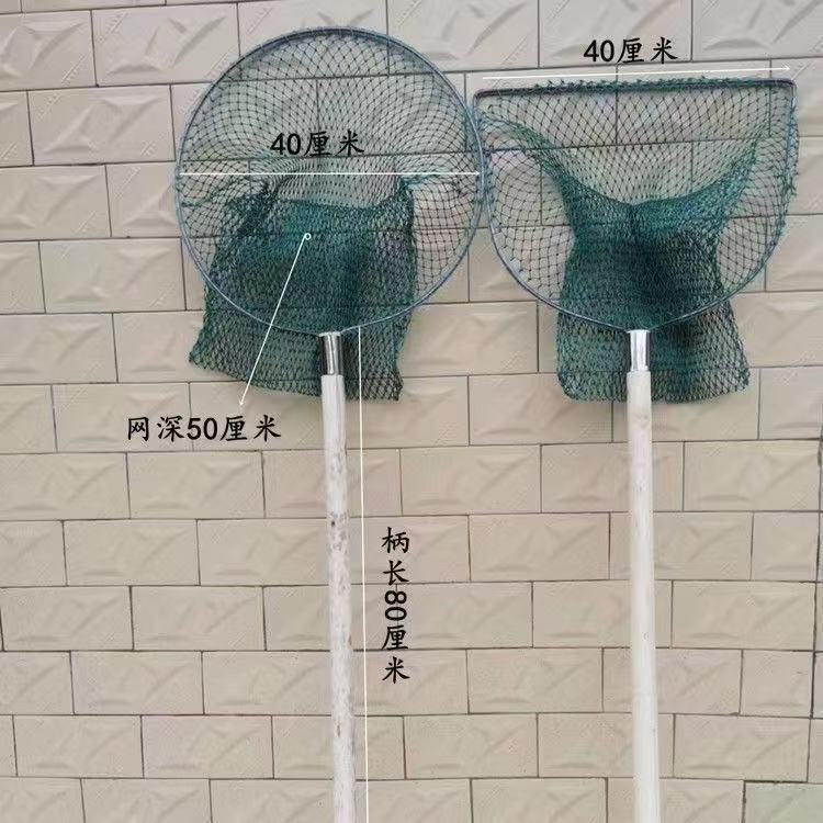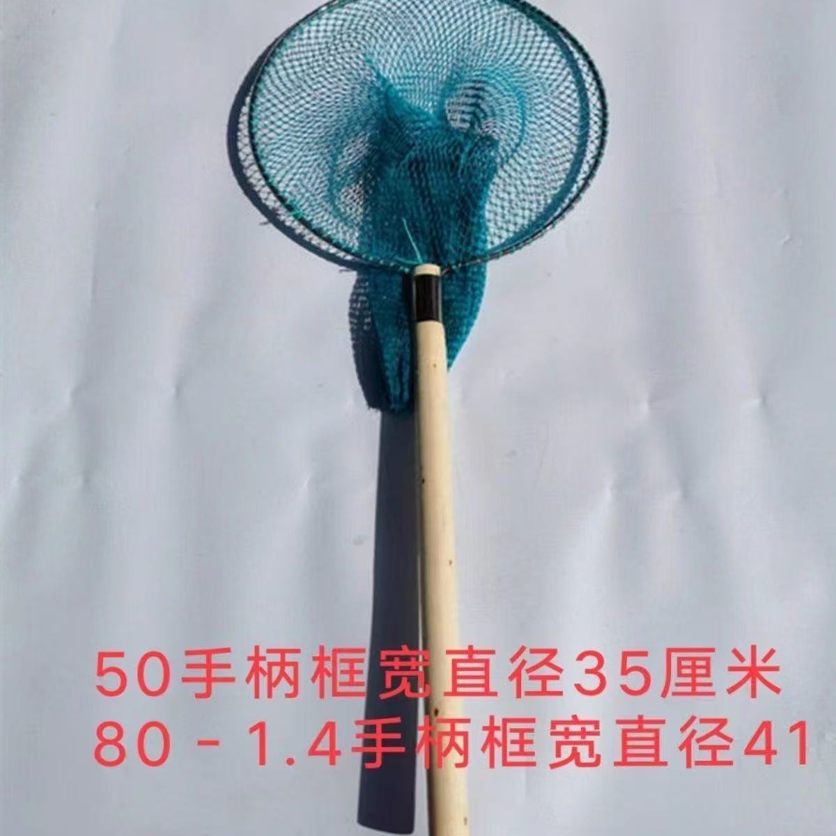 鱼网抄网木柄铁网圈实用无害方圆形木把单框抄网套装鱼塘捕捞渔具