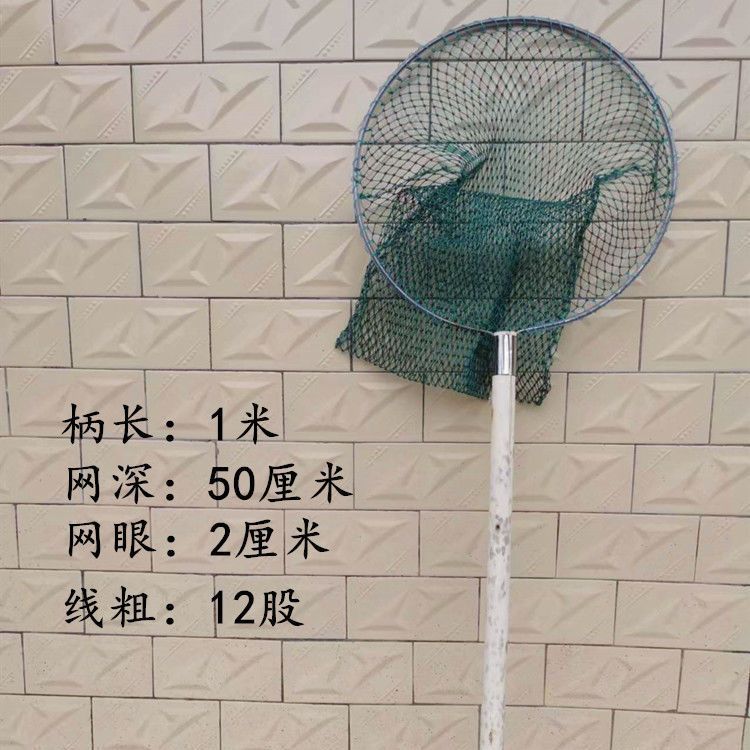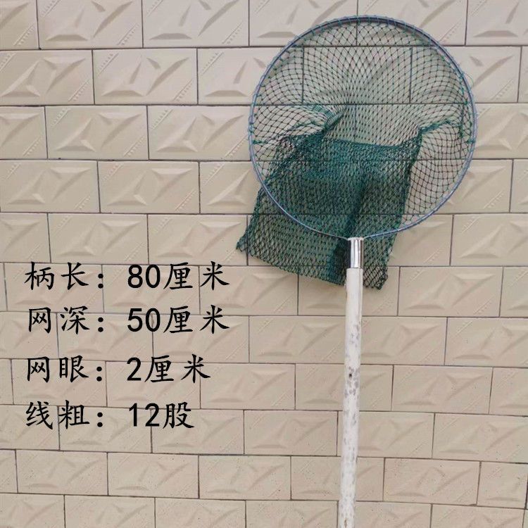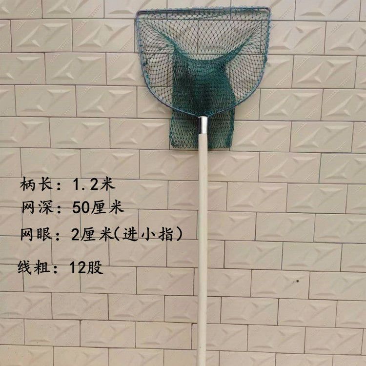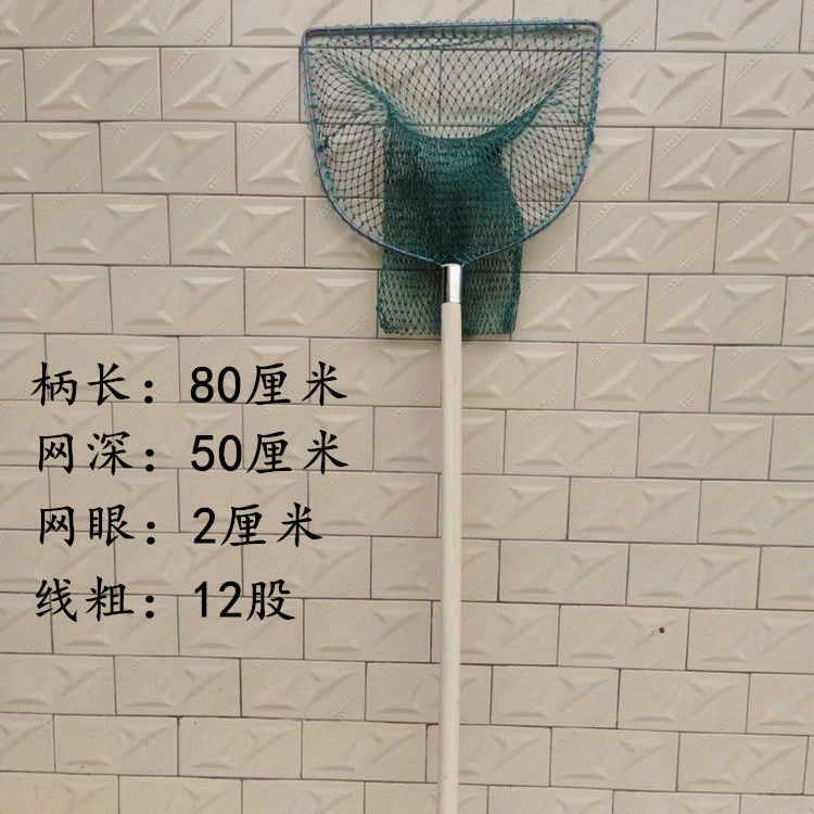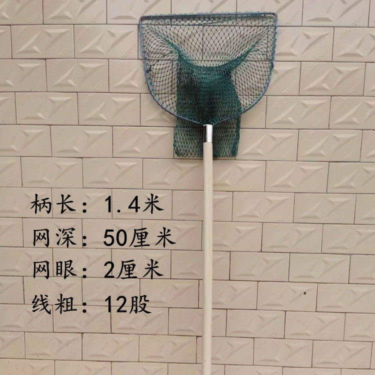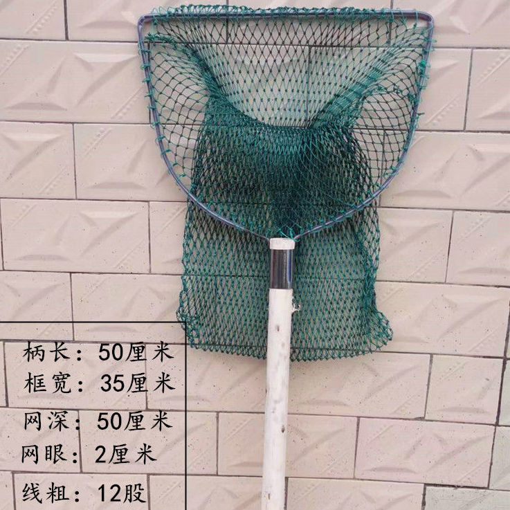 鱼网抄网木柄铁网圈实用无害方圆形木把单框抄网套装鱼塘捕捞渔具