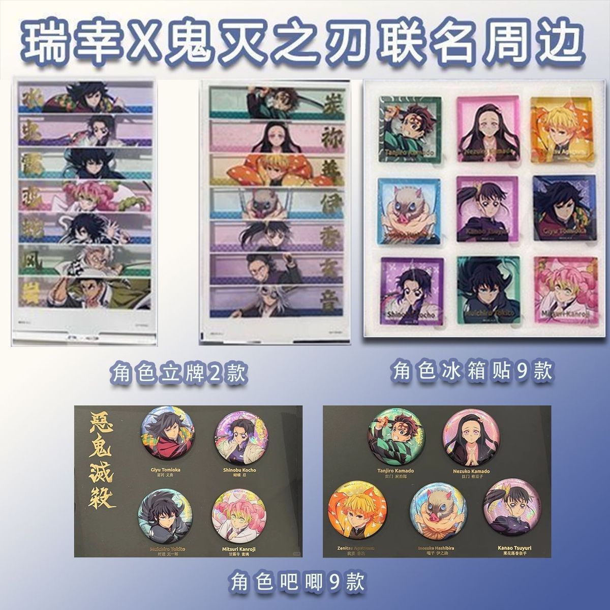 瑞幸鬼灭之刃联名周边炭治郎香奈乎冰箱贴立牌吧唧同人款收藏纪念