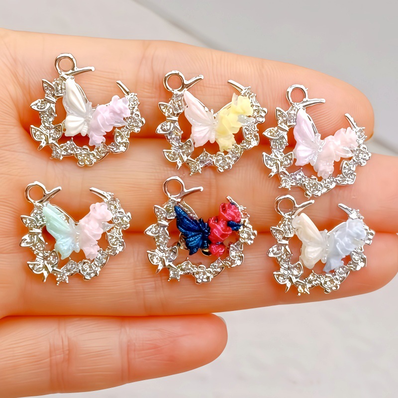 合金吊坠镶圆形钻花环蝴蝶diy饰品配件手链项链手作材料装饰配件