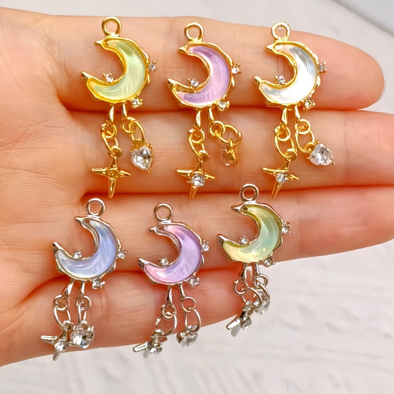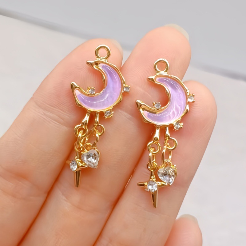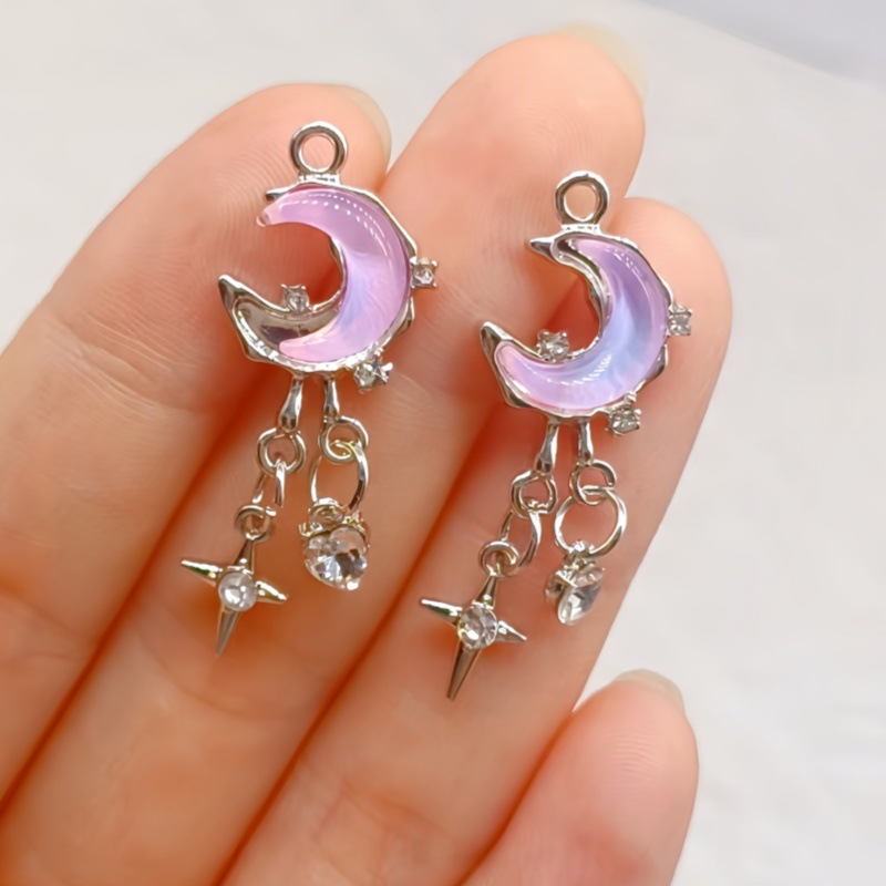 ピンクのカラフルな色の合金はダイヤモンドのペンダントの星の月の蝶結びのdiy耳飾りのキーホルダーの手作りの材料を入れます。