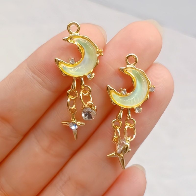 超仙五角星月亮流苏挂件DIY耳饰项链手链耳环饰品装饰配件材料
